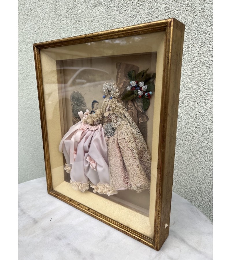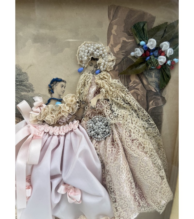 Diorama, Ephémères, XIX a. mados graviūra Prancūziška mada, rankų darbo, antikvarinė. Dydis: 5,5 x 32 x 38 cm. Kaina 143