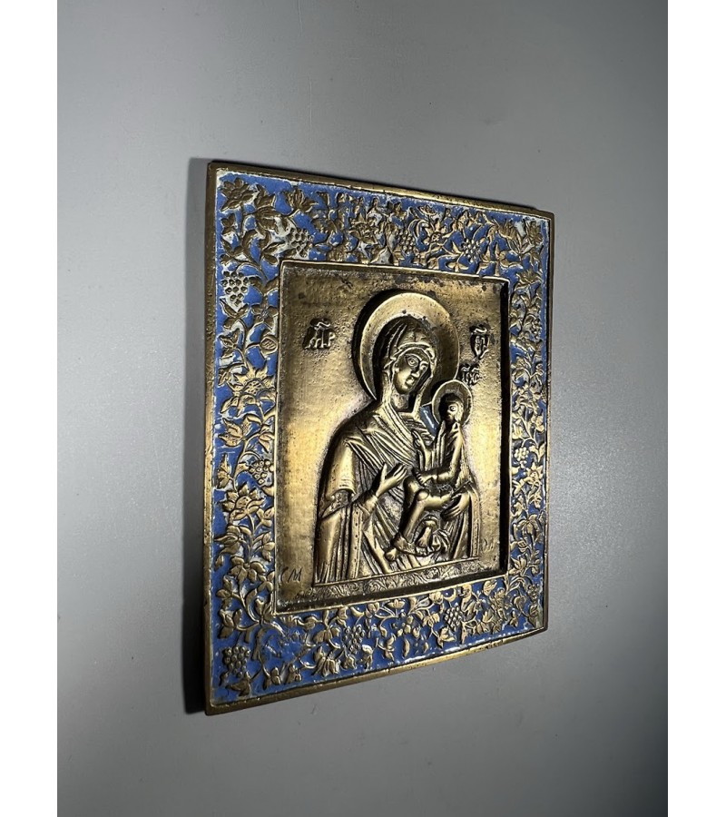 Ikona, plaketė Kazanės Dievo Motina antikvarinė, stačiatikių, krikščionių ortodoksų, pravoslavų, puošta mėlyna emale. Kaina 193