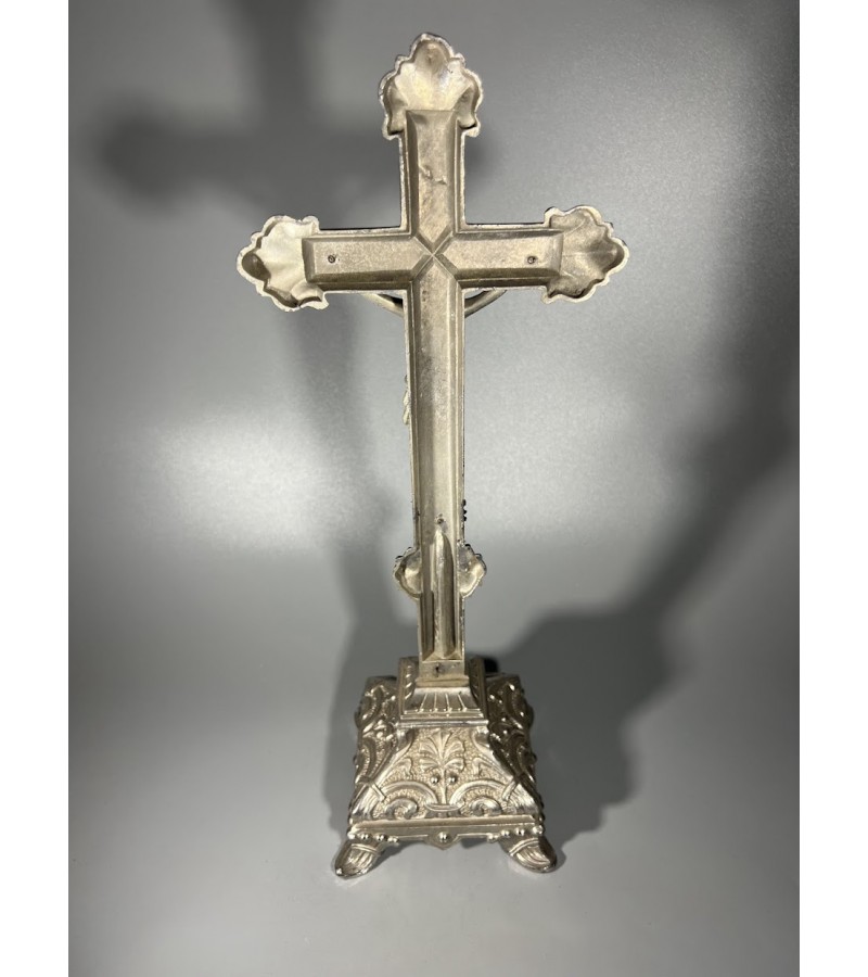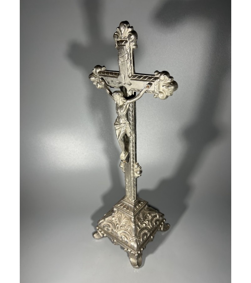 Tags: Nukryžiuotasis, kryžius, pastatomas, antikvarinis, Metalas, alavas.
