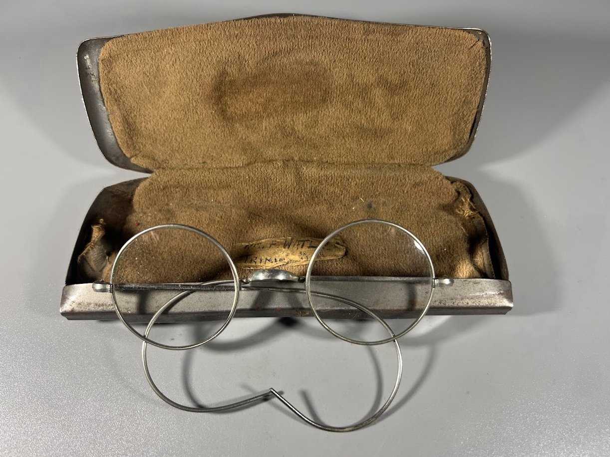 Akiniai su dėklu antikvariniai. Kaina 78
