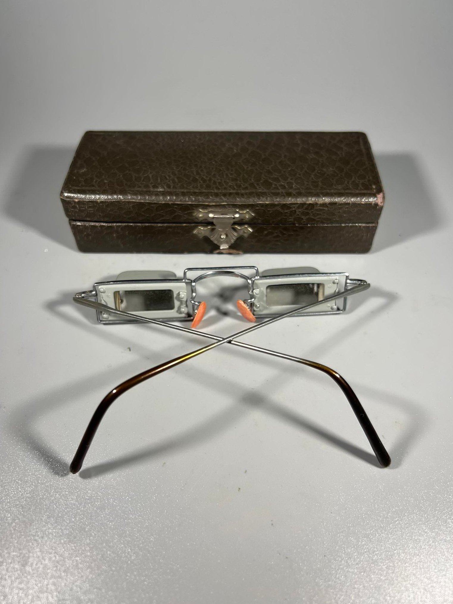 Akiniai techniniai su dėžute. Žiūrint į priekį matai savo kojas. Kaina 56