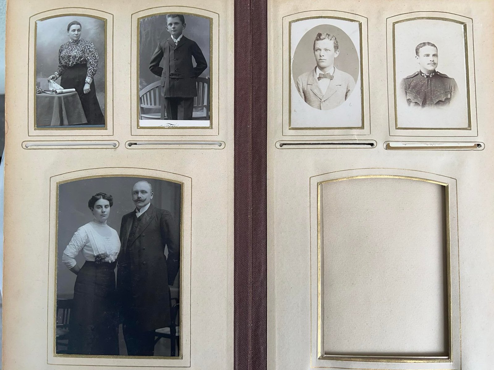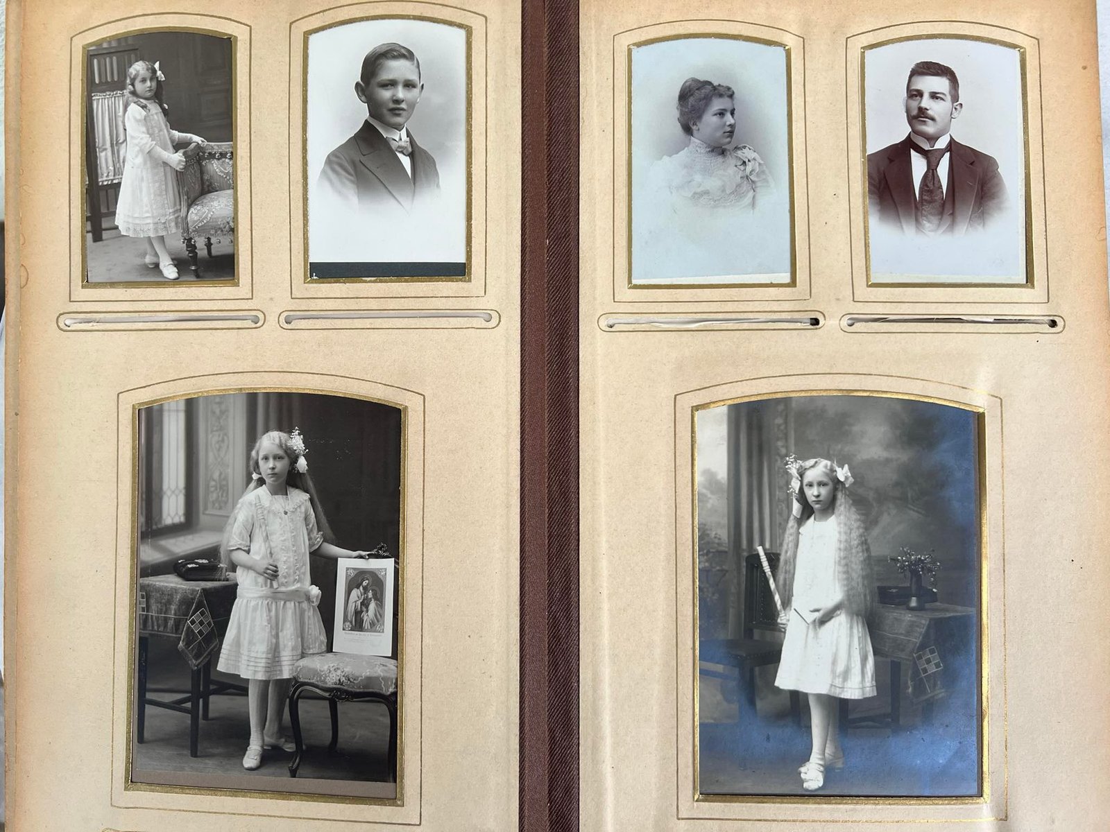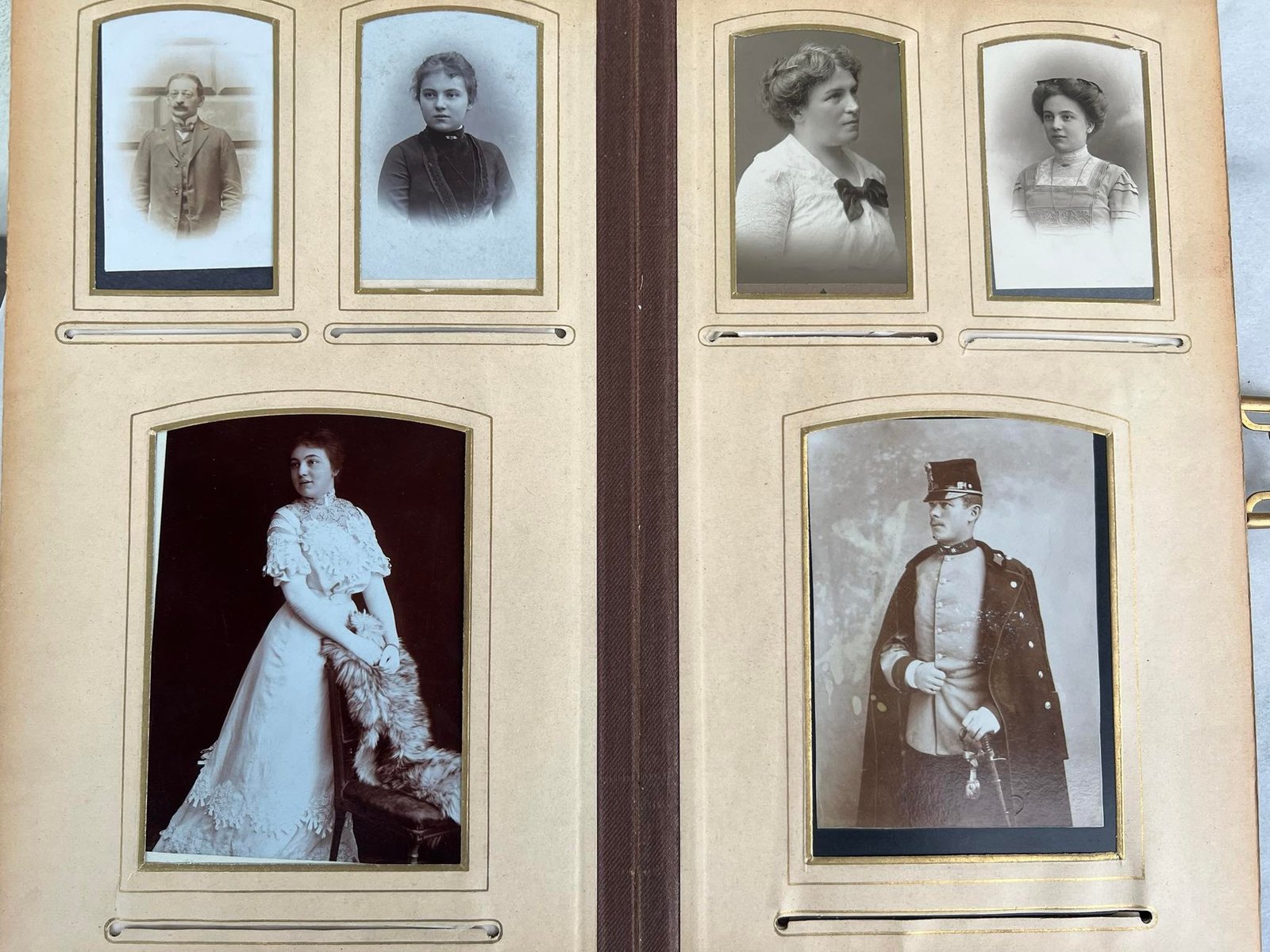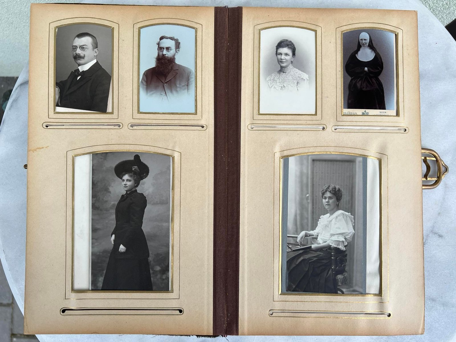 Albumas su kartonažinėnis nuotraukomis, antikvarinis. XIX a. pr. Austrija. Kaina 127