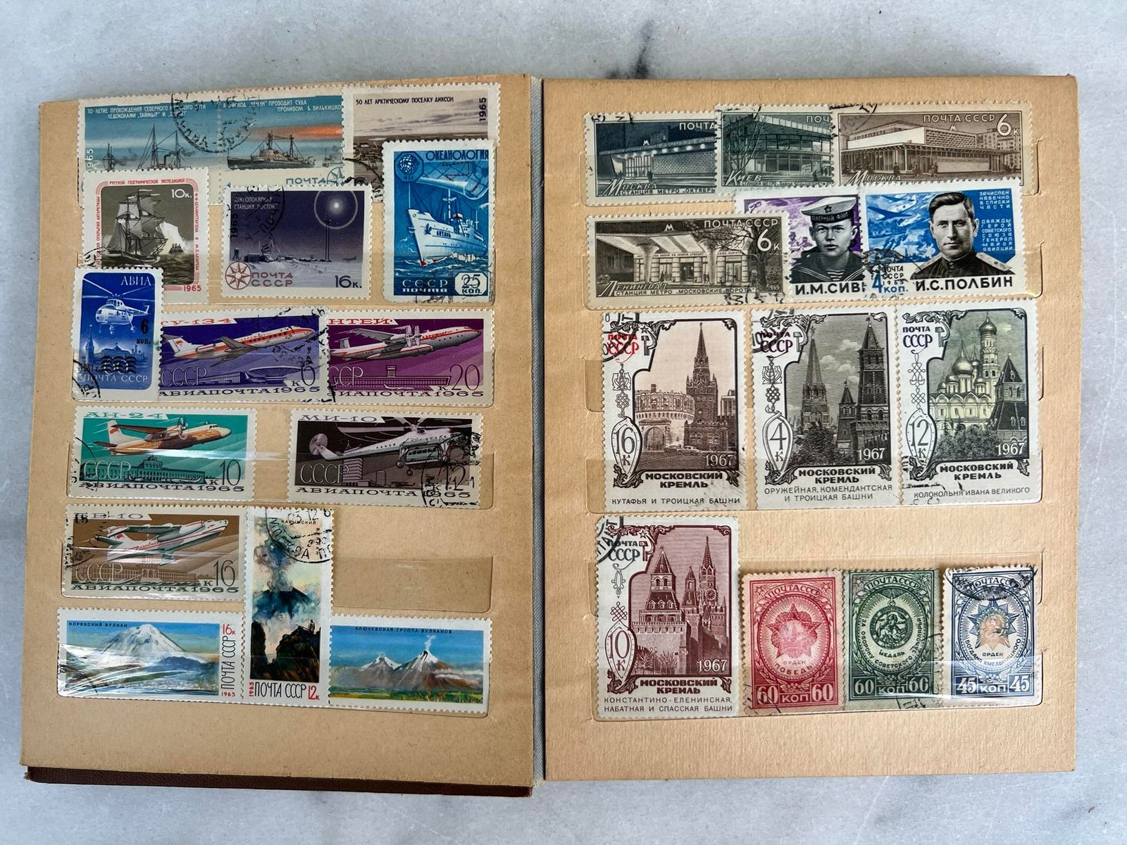 Albumas su pašto ženklais tarybinių laikų. 8 lapai. Kaina 26