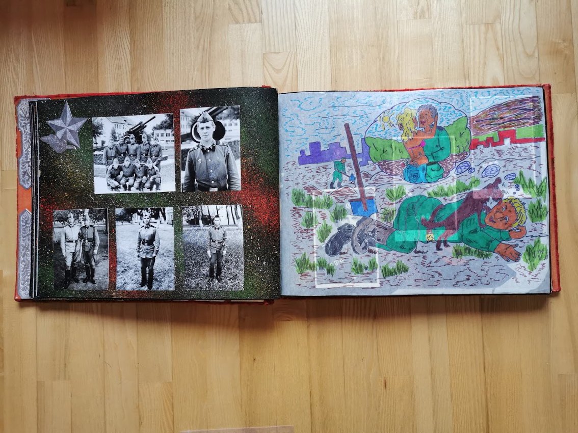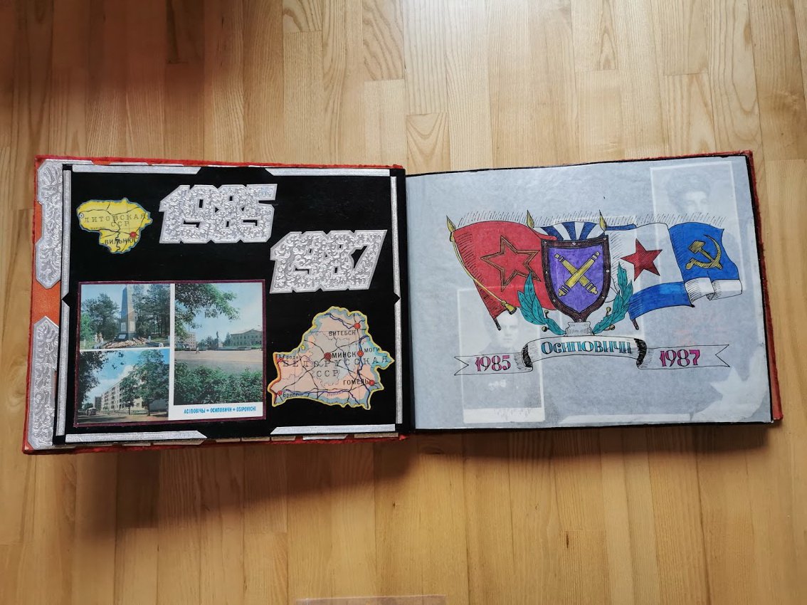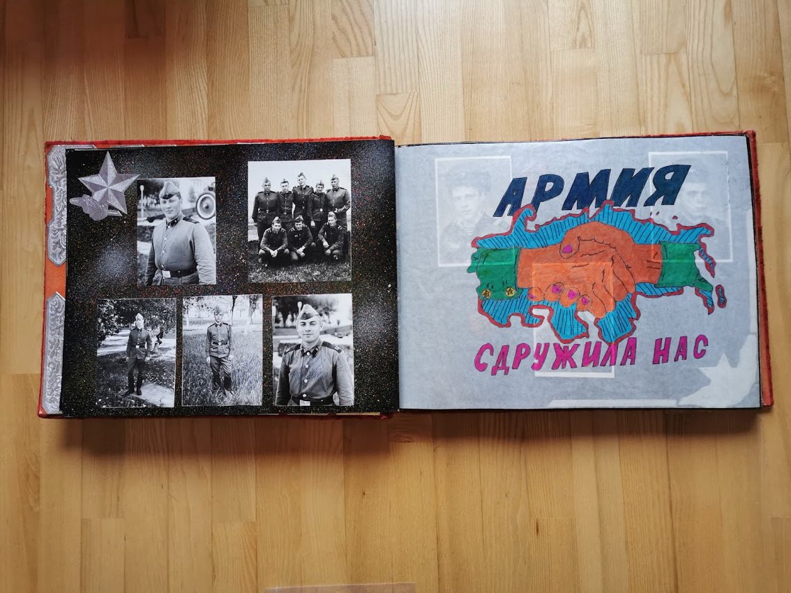Albumas tarybinės, sovietinės armijos dembelio. 1985-1987 m. Albumo dydis: 30 x 42 cm. 21 lapas su piešiniais ir nuotraukomis. Kaina 53