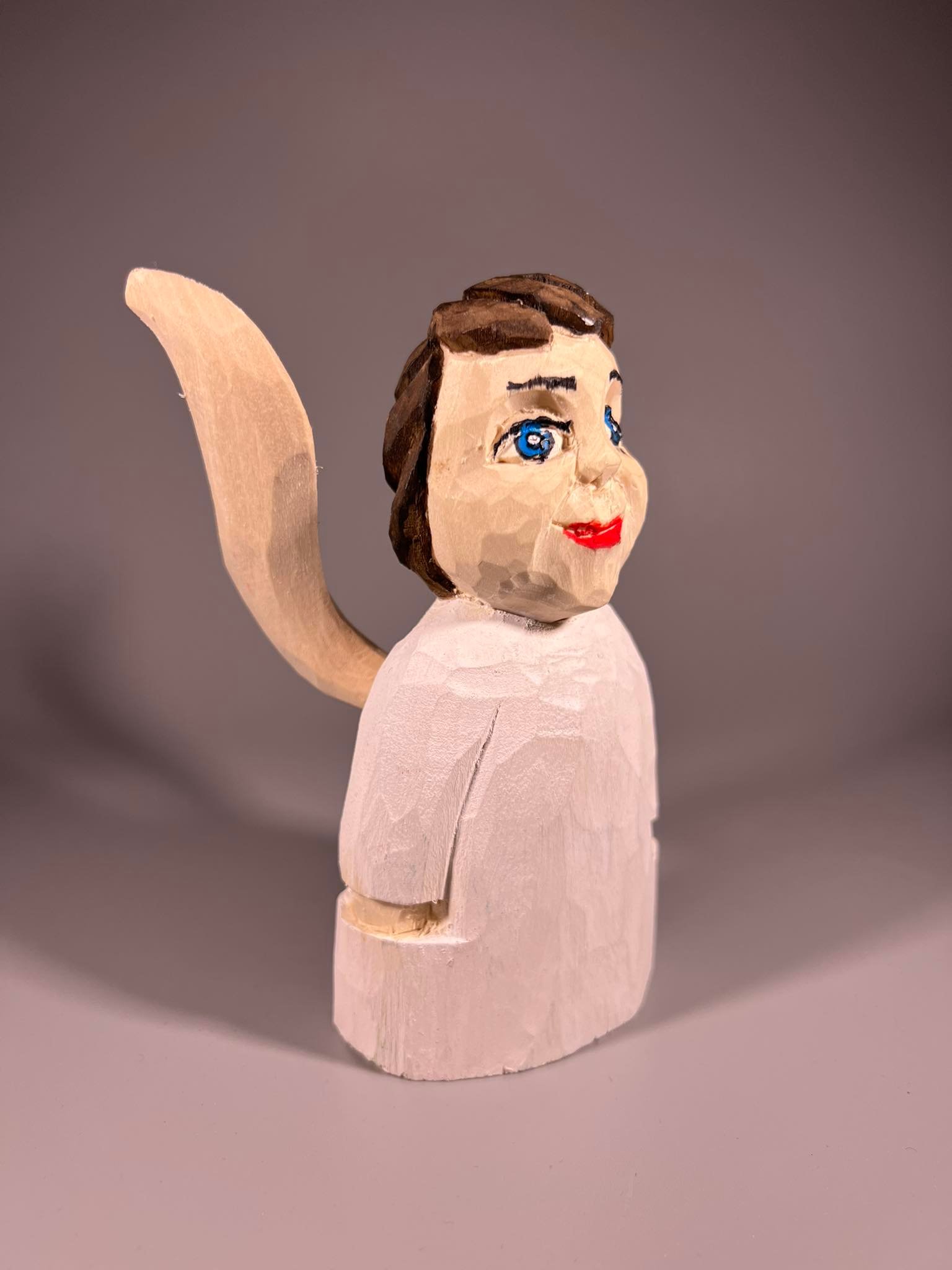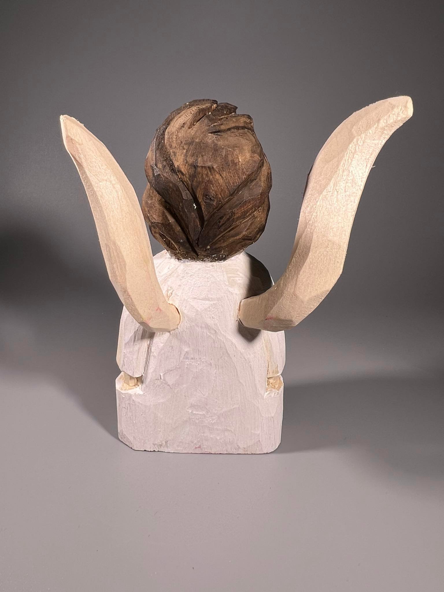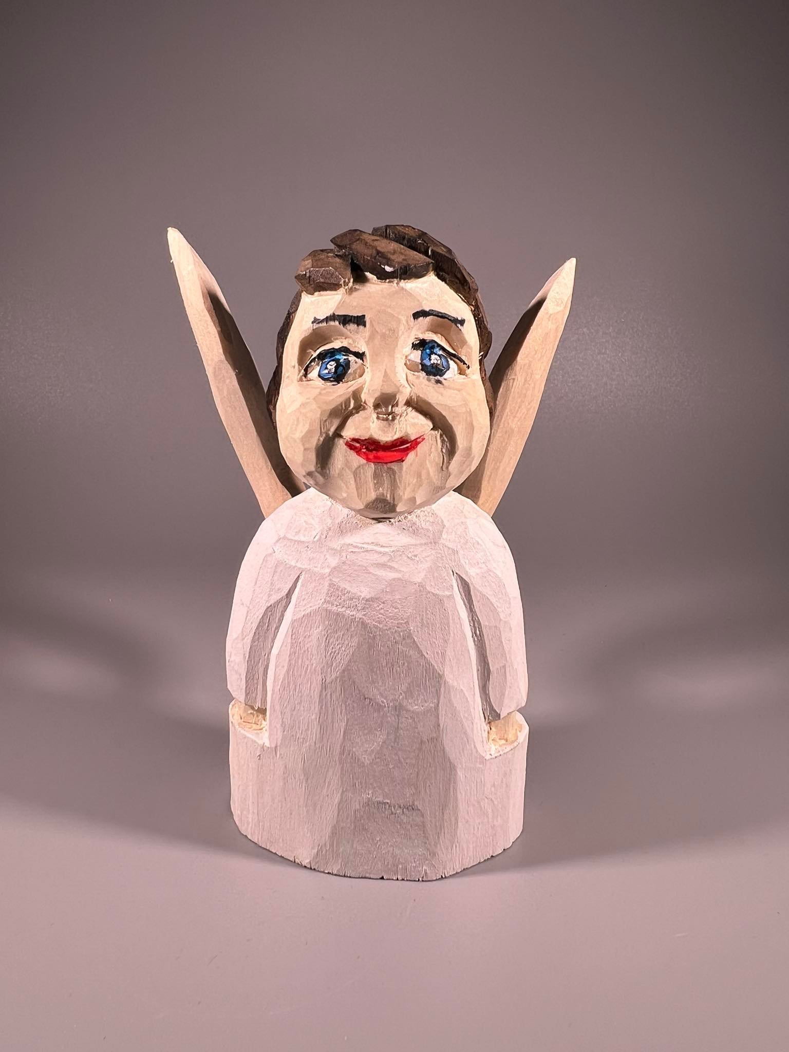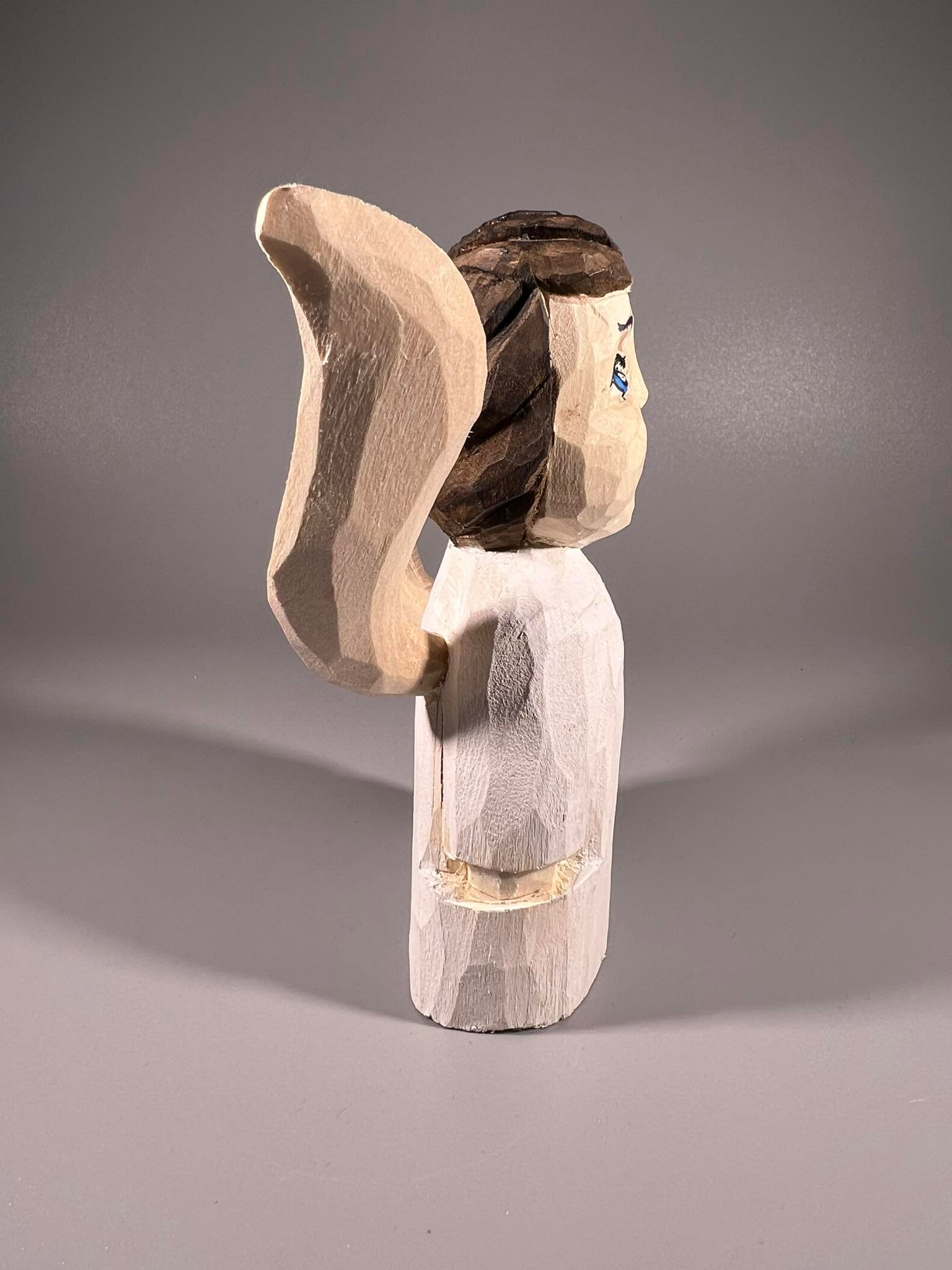 Angelas lietuviškas, medinis, drožinėtas tautodailininko. Aukštis 13 cm. Kaina 23