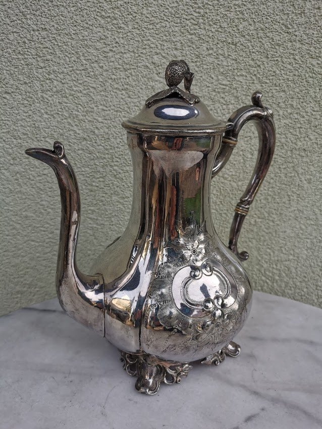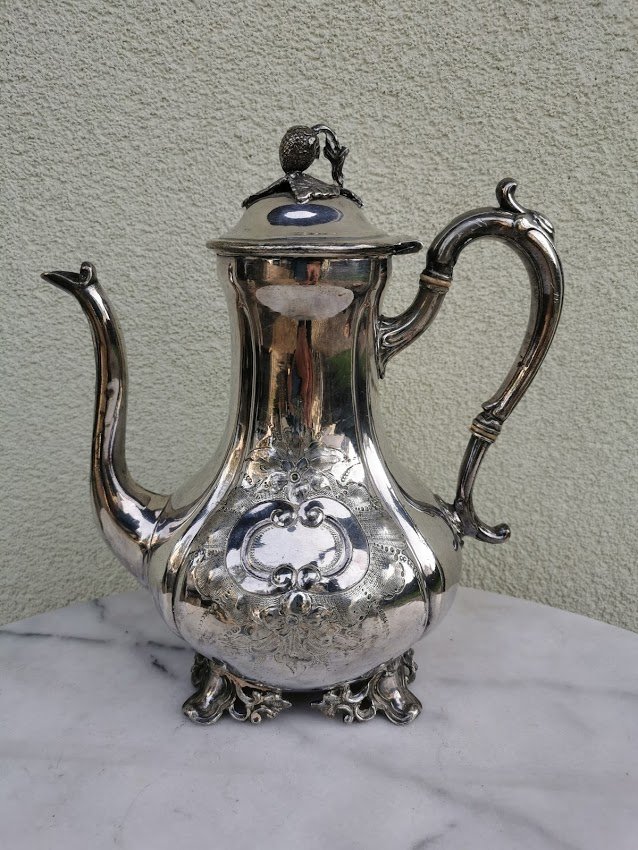 Arbatinis, kavinukas antikvarinis, sidabruotas. Aukštis 28 cm. Kaina 52
