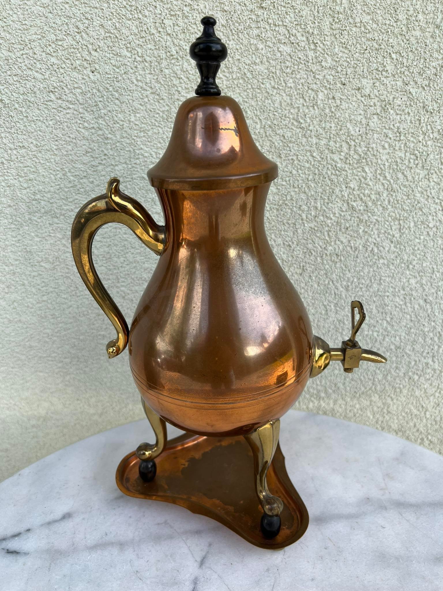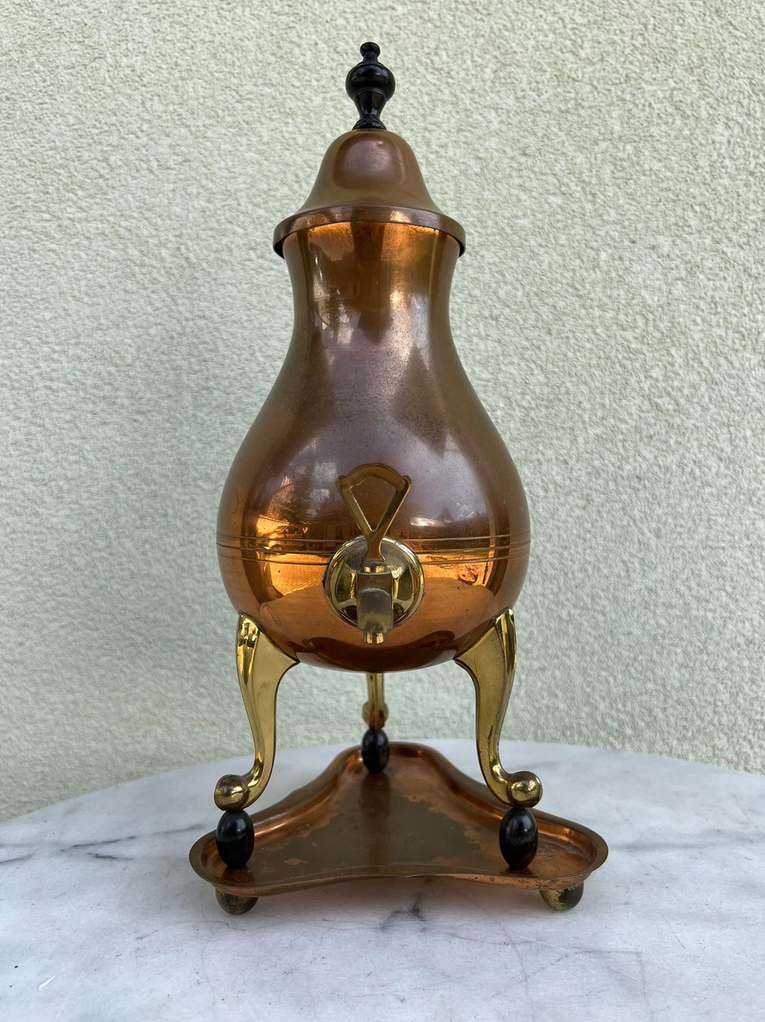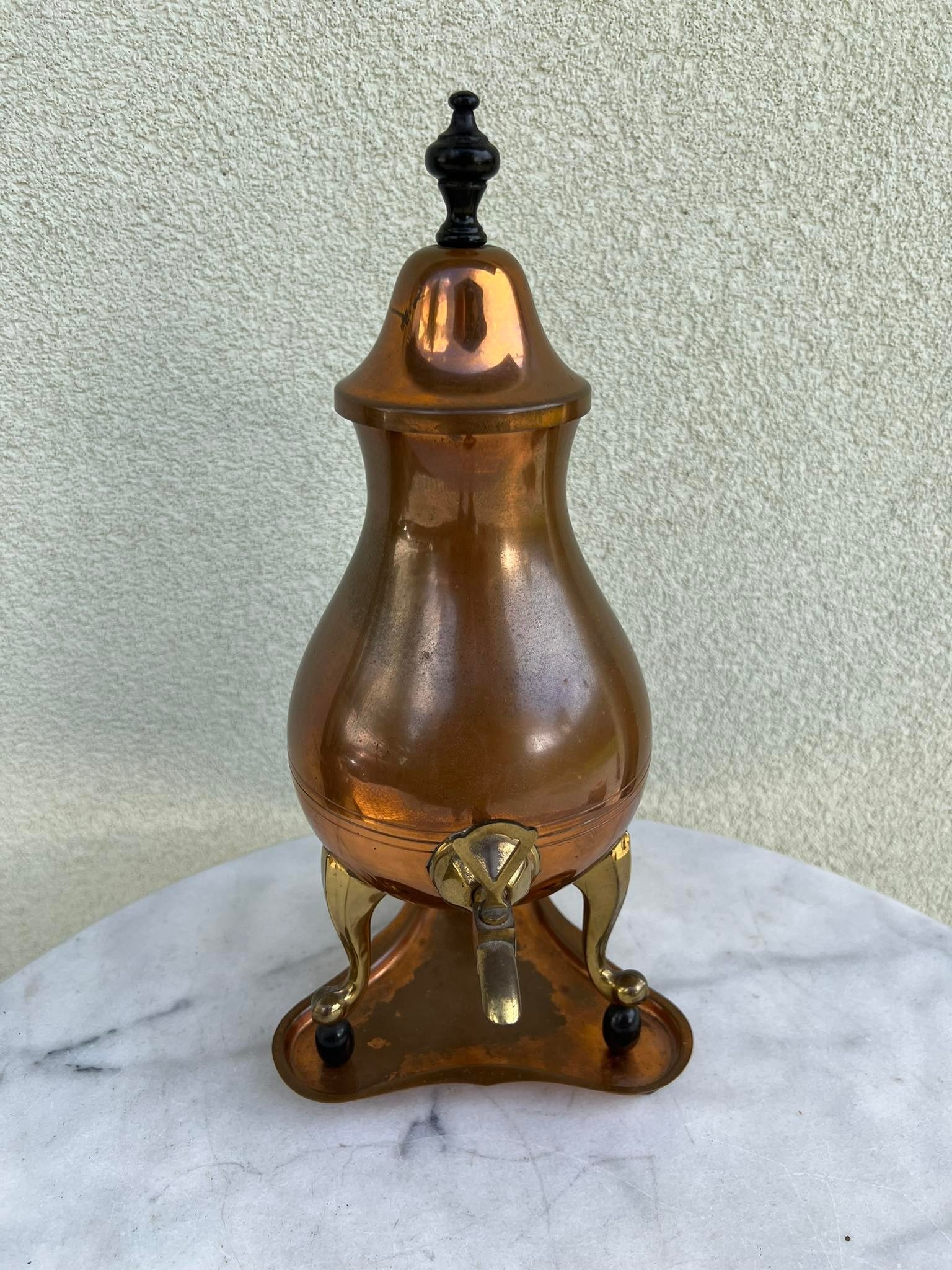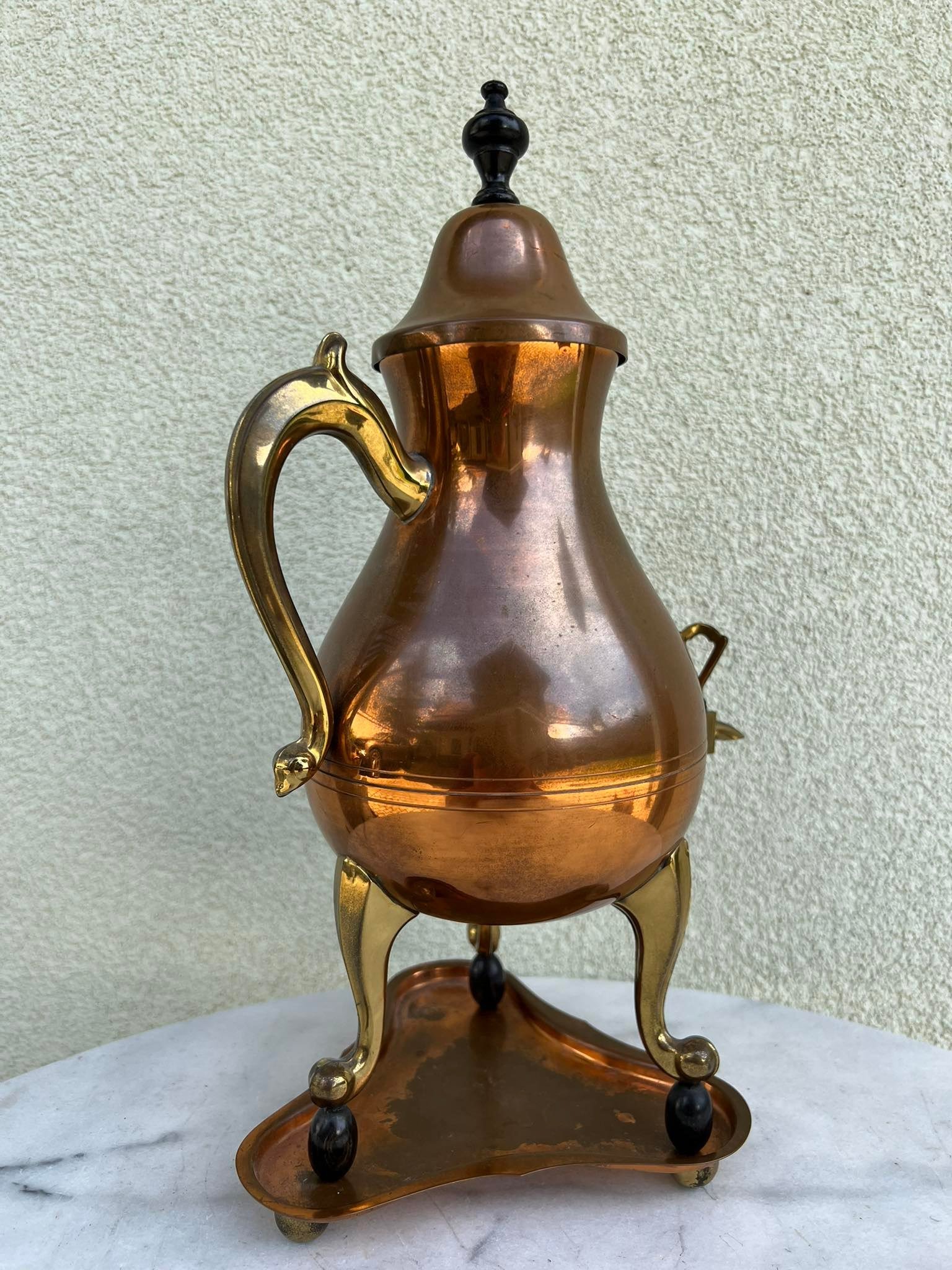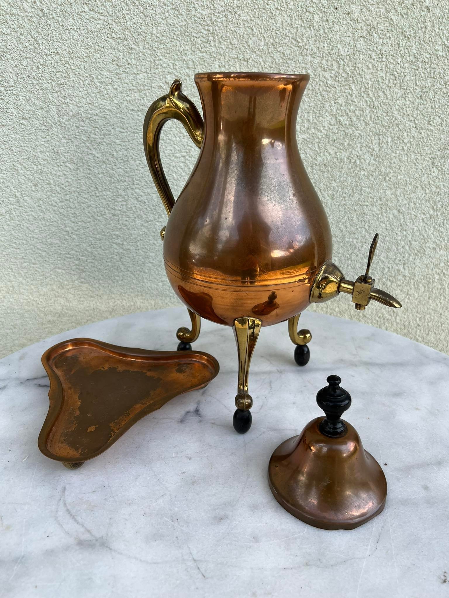 Arbatinis su padėklu, varinis, antikvarinis. Aukštis 40 cm. Kaina 63
