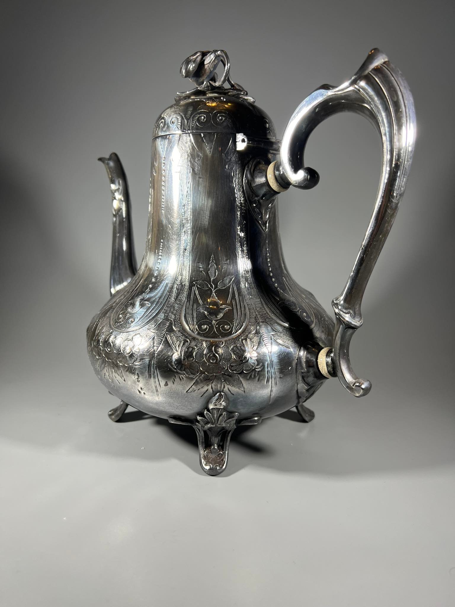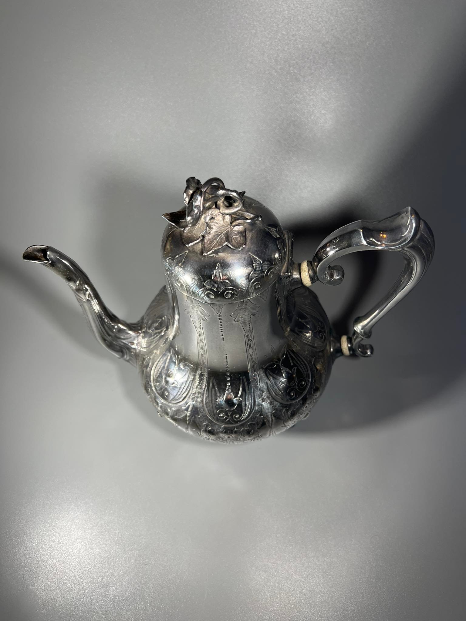 Arbatinukas, kavinukas antikvarinis metalinis, puoštas gėlė. Shefield Plate. Aukštis 24 cm. Kaina 53