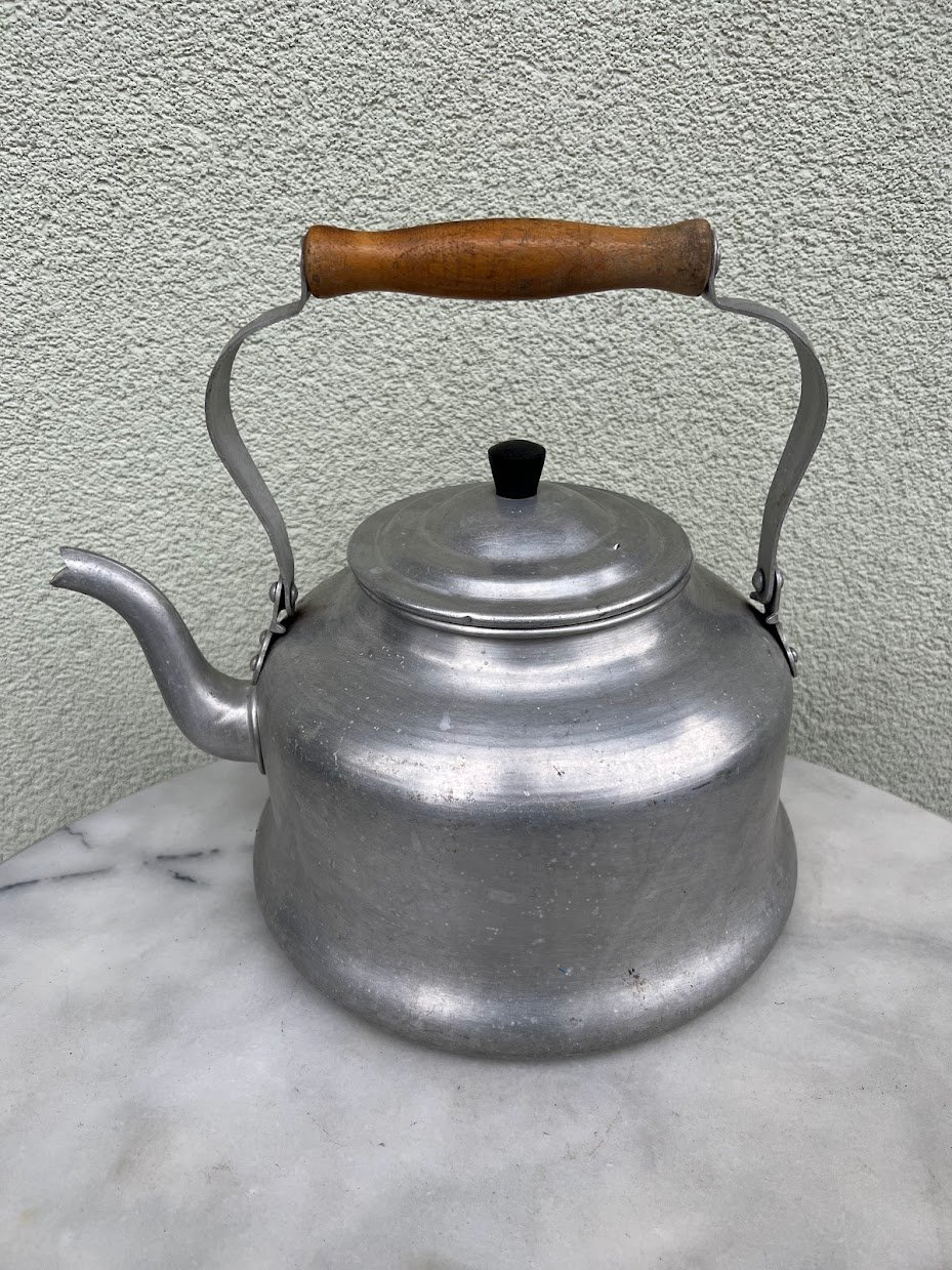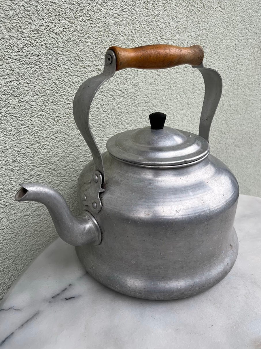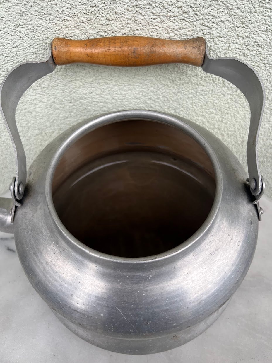 Arbatinukas, virdulys sovietinis, tarybinių laikų, aliuminis, medine rankena. Talpa 5 l. 1950-1980 m. Kaina 38