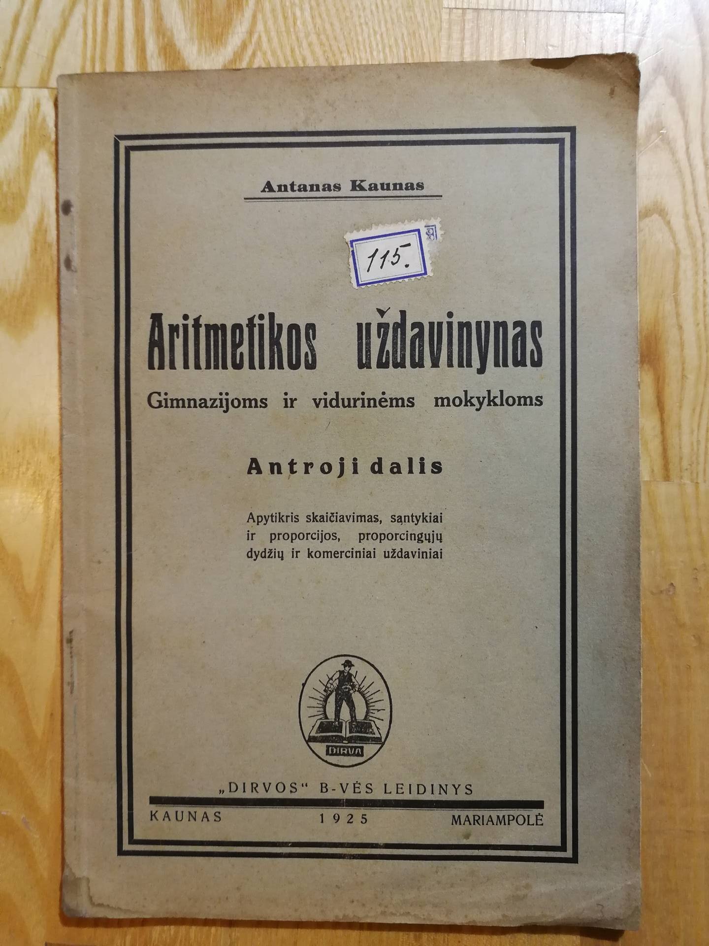 Aritmetikos uzdavinynas, 1925 m. 88 psl. Kaina 8