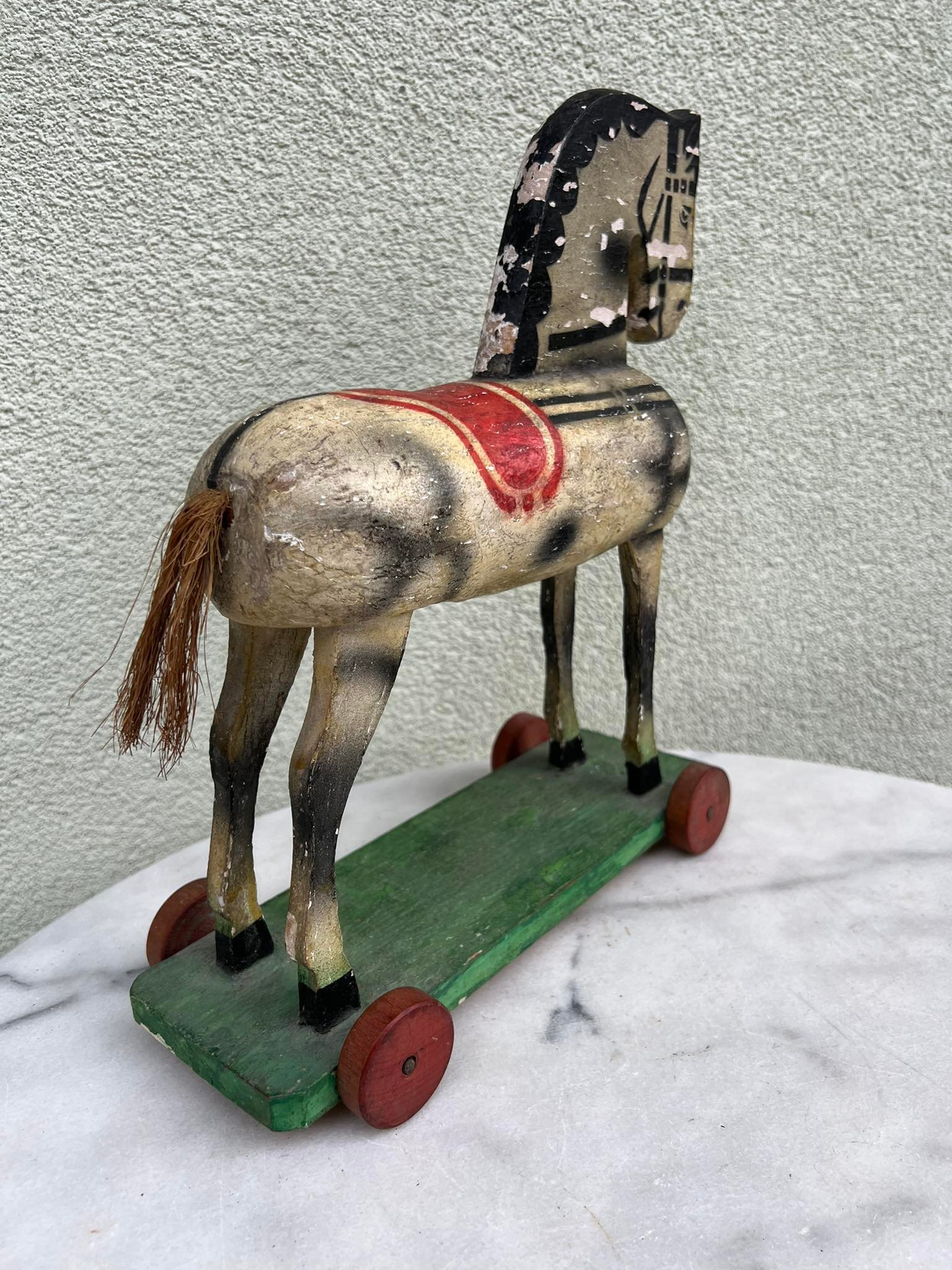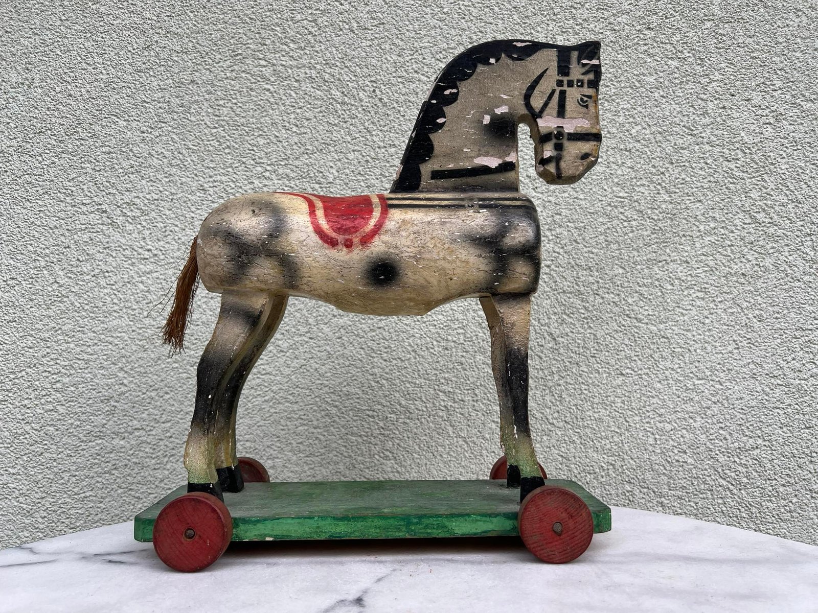Arkliukas medinis su ratukais. antikvarinis. Kaina 53