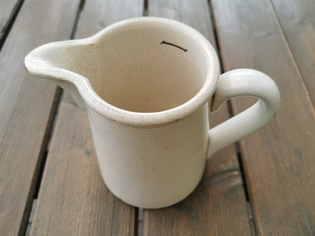 Ąsotėlis, 1/2 Ltr. matas, antikvarinis, fajanso. Kaina 36