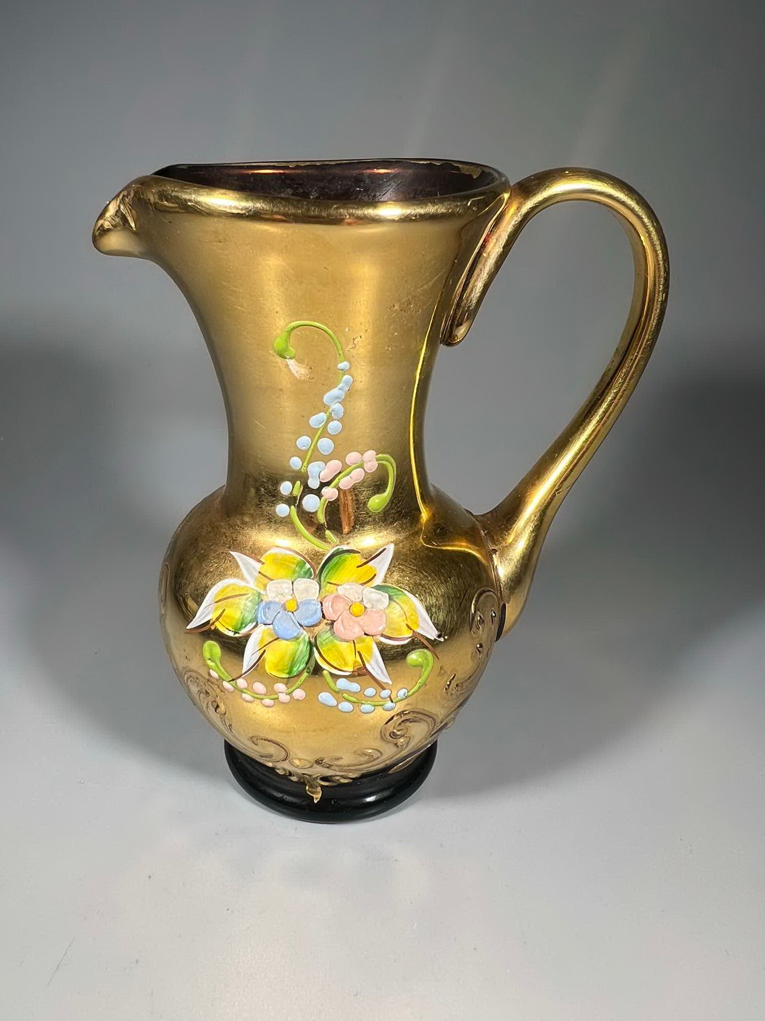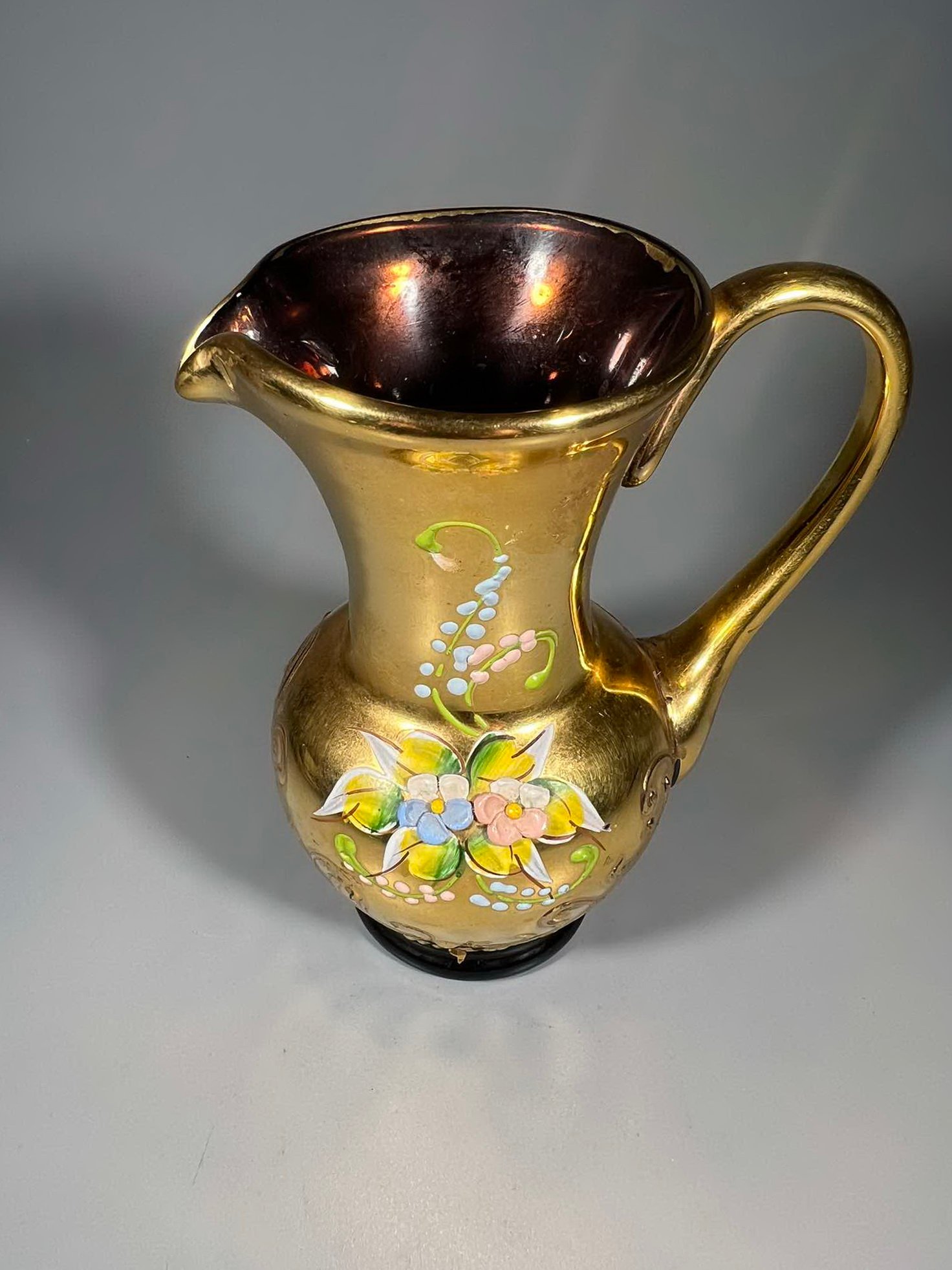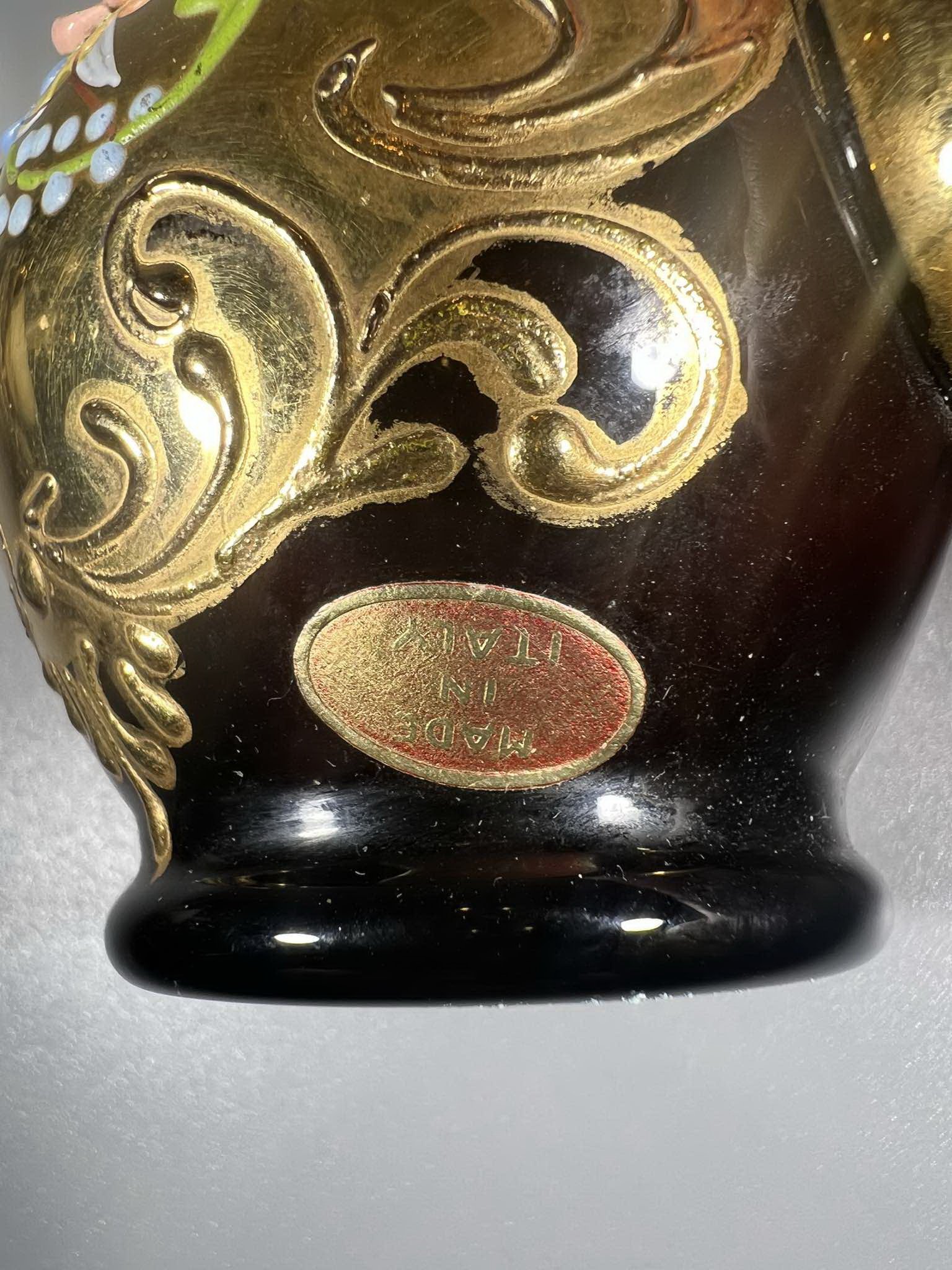 Ąsotėlis, vazelė vintažinis. tapytas, stiklinis, Murano Tre Fuoche. Made in Italy. 1950 m. Kaina 16