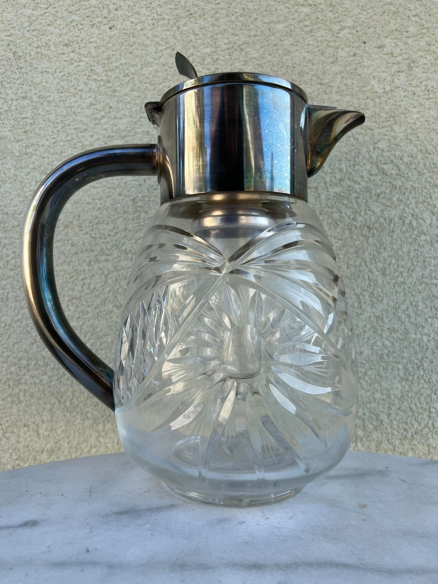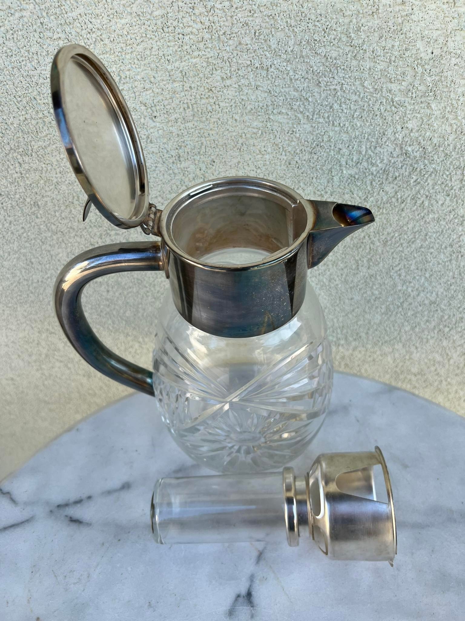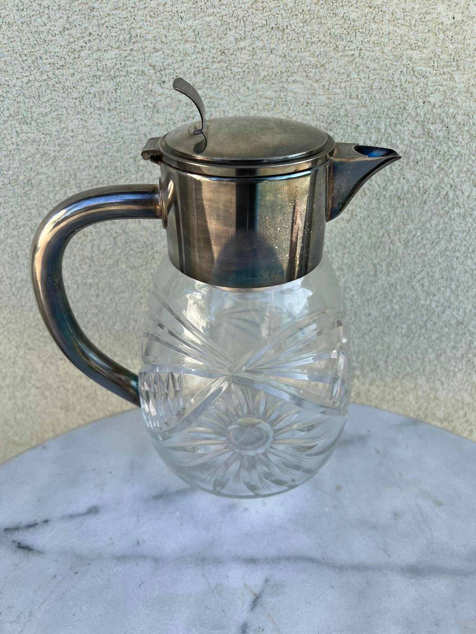 Ąsotis su šaldymo indu ledukams, sidabruotas, antikvarinis, raižytu stiklu. Gamintojas WMF (Württembergische Metallwarenfabrik) Vokietija. Kaina 138