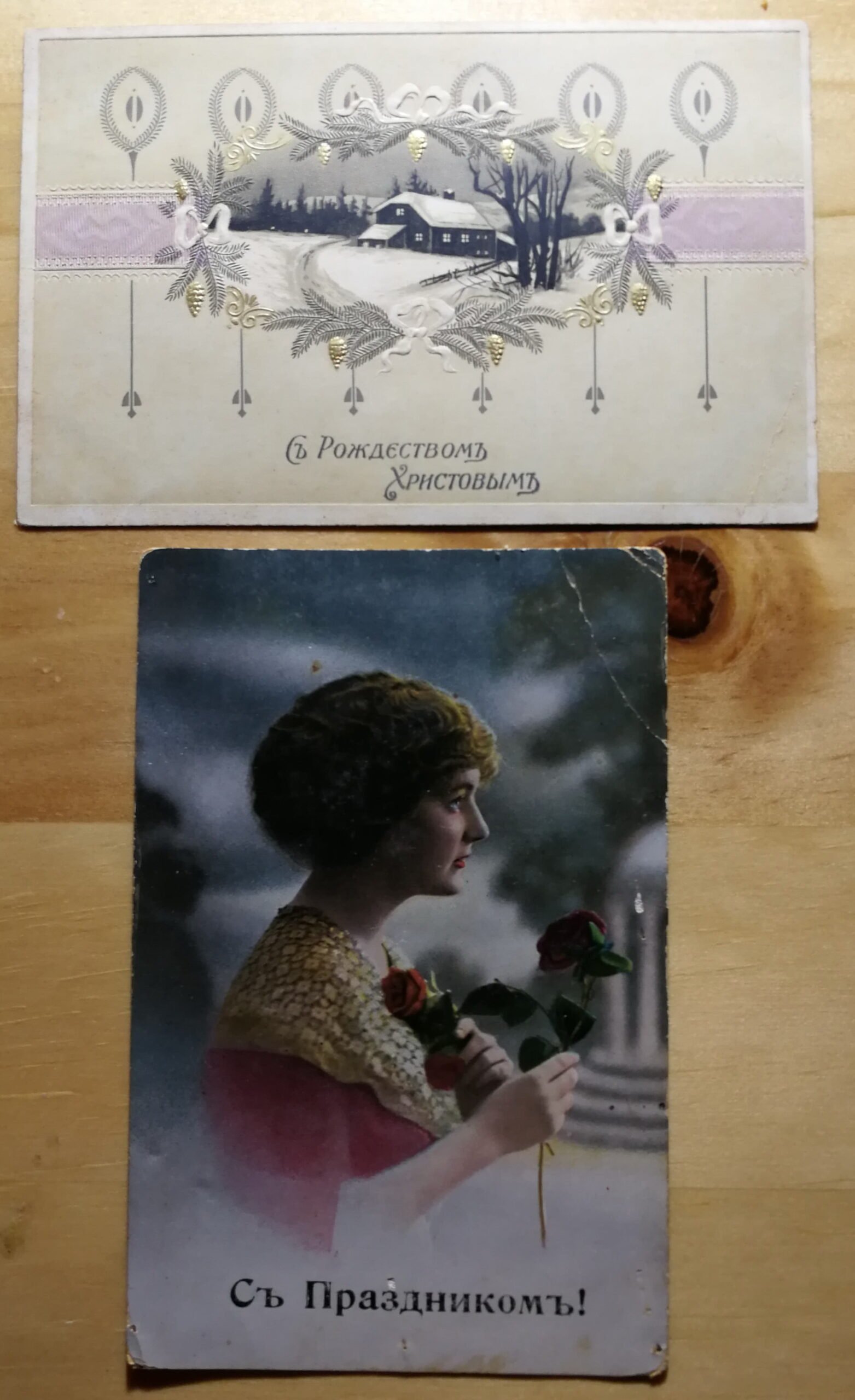 Atvirukai rusiški šventiniai, sveikinimo, caro laikų. LIKO TIK APATINĖ. Kaina 6