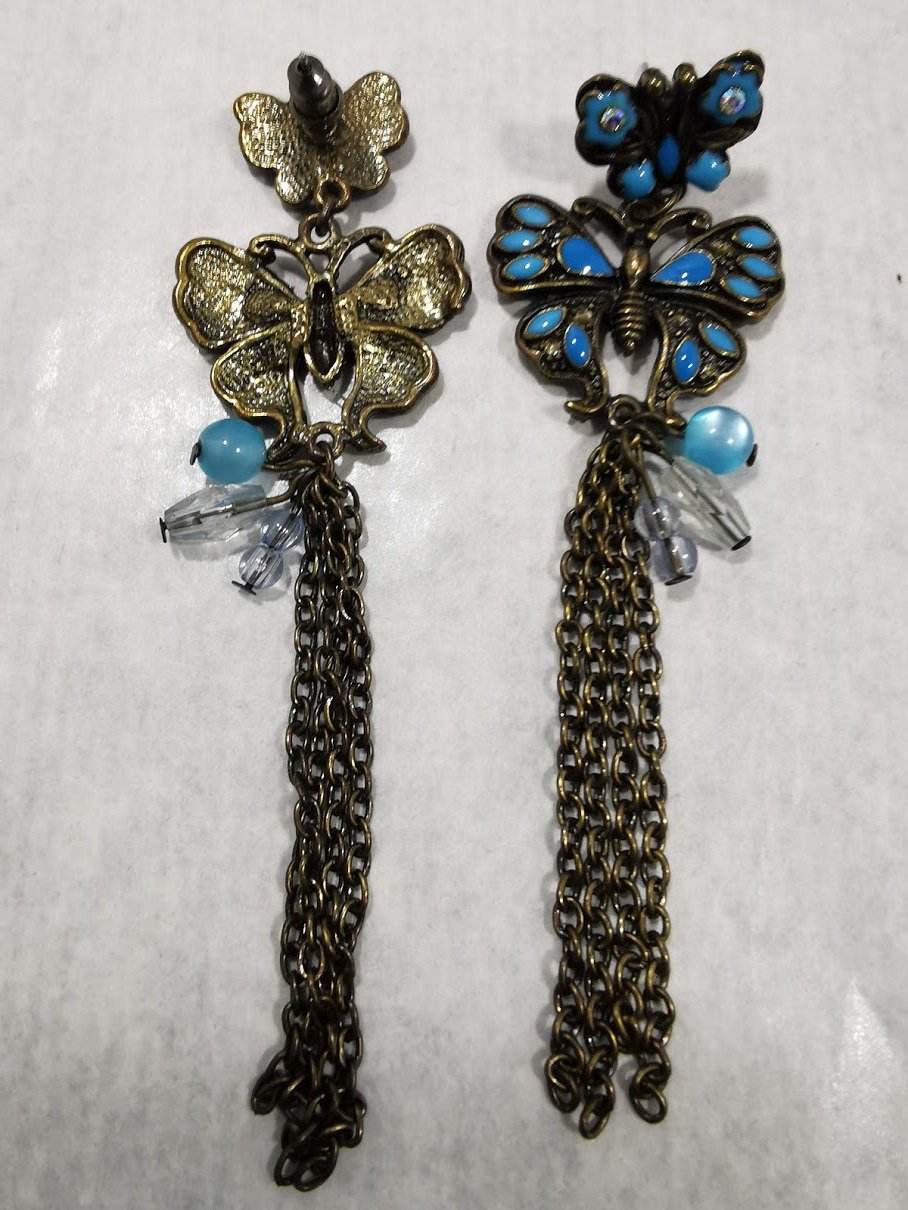 Auskarai vintažiniai Drugeliai. Ilgis 8,5 cm. Kaina 21