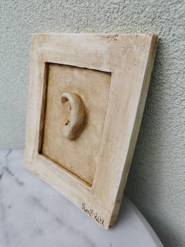 Bareljefas gipsinis Ausis. Nicole Vider. Dydis 20 x 23 cm. Kaina 38