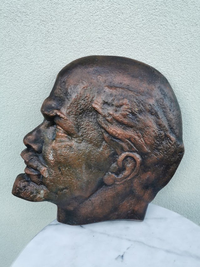 Bareljefas Lenino tarybinių, sovietinių laikų. Variuotas aliuminis. Skersmuo 60 cm. Kaina 83
