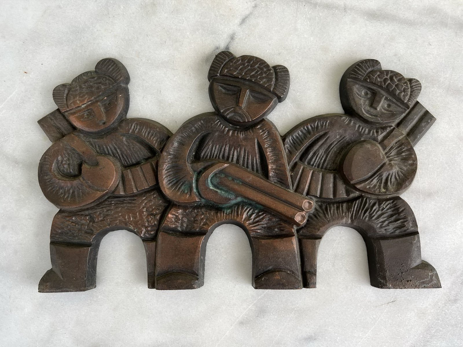 Bareljefas Medžiotojai. Variuotas aliuminis. Kaina 33