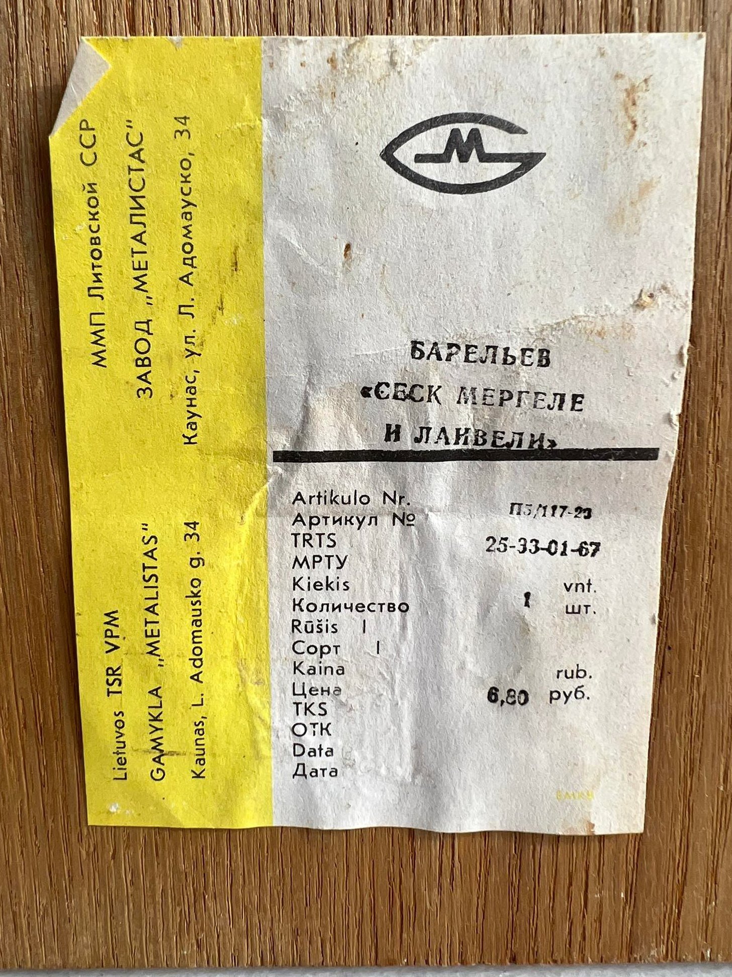 Bareljefas Sėsk mergele į laivelį. Lietuvos TSR VPM gamykla Metalistas. Kaunas, L. Adomausko g. 34. Sovietinis, tarybinių laikų. Kaina 43
