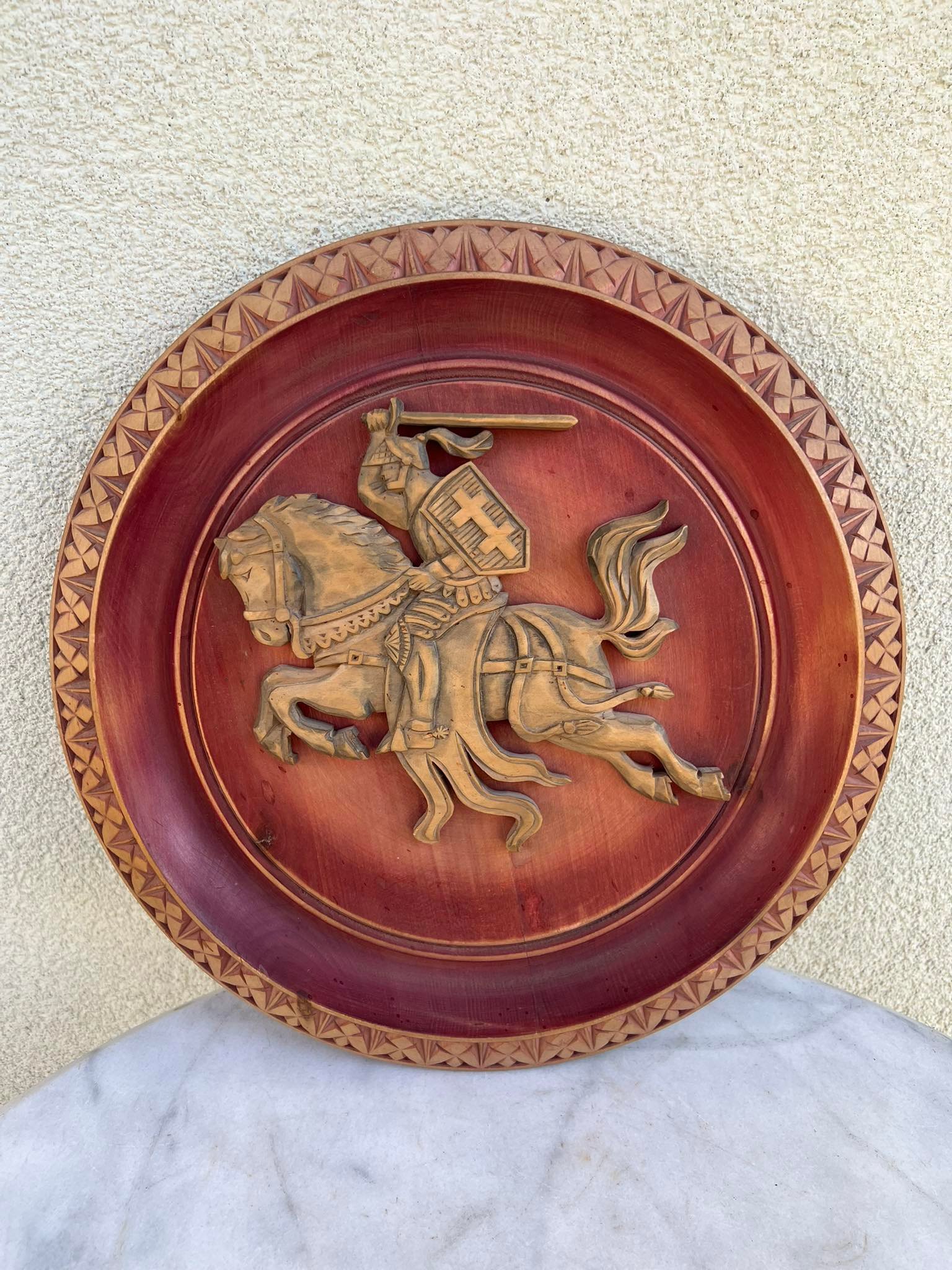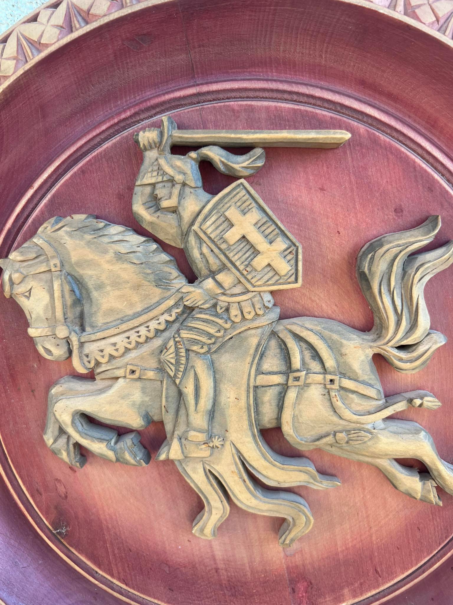 Bareljefas Vytis, medinis, drožinėtas liaudies meistro. 1989 m. Skersmuo 35 cm. Kaina 213