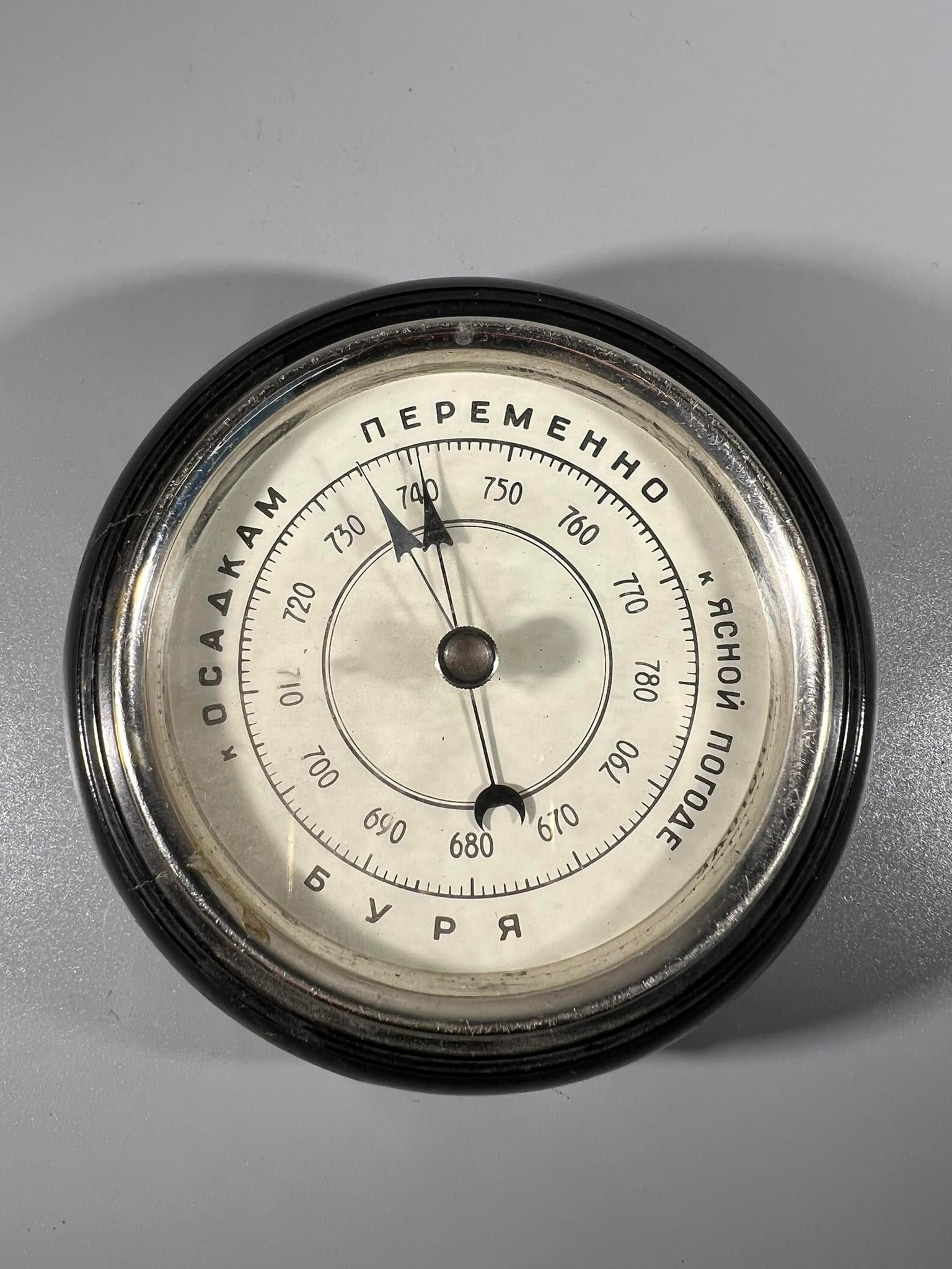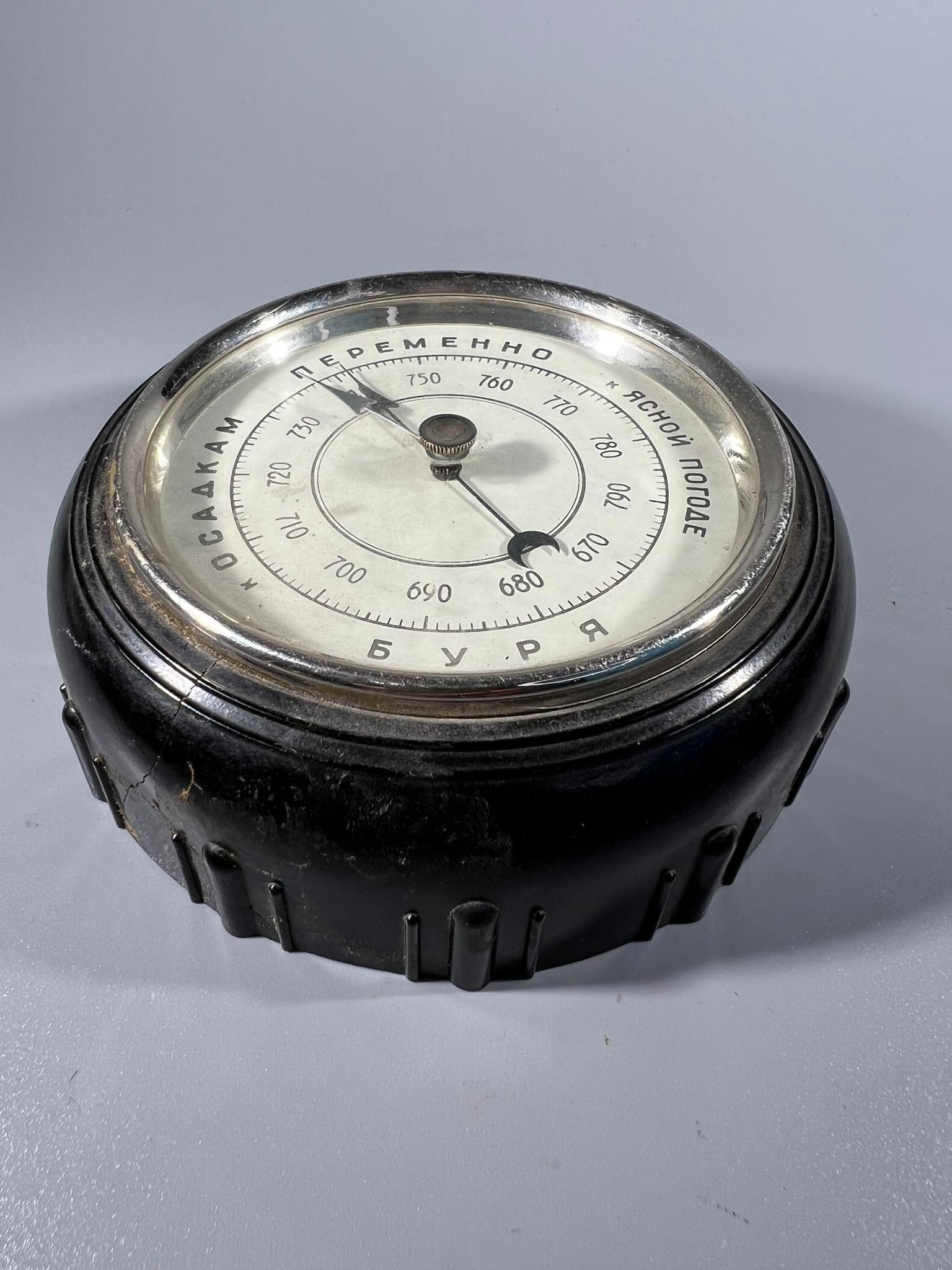 Barometras pakabinamas, sovietinis, tarybinių laikų, apie 1950 m. Skersmuo 14, storis 5 cm. Kaina 32