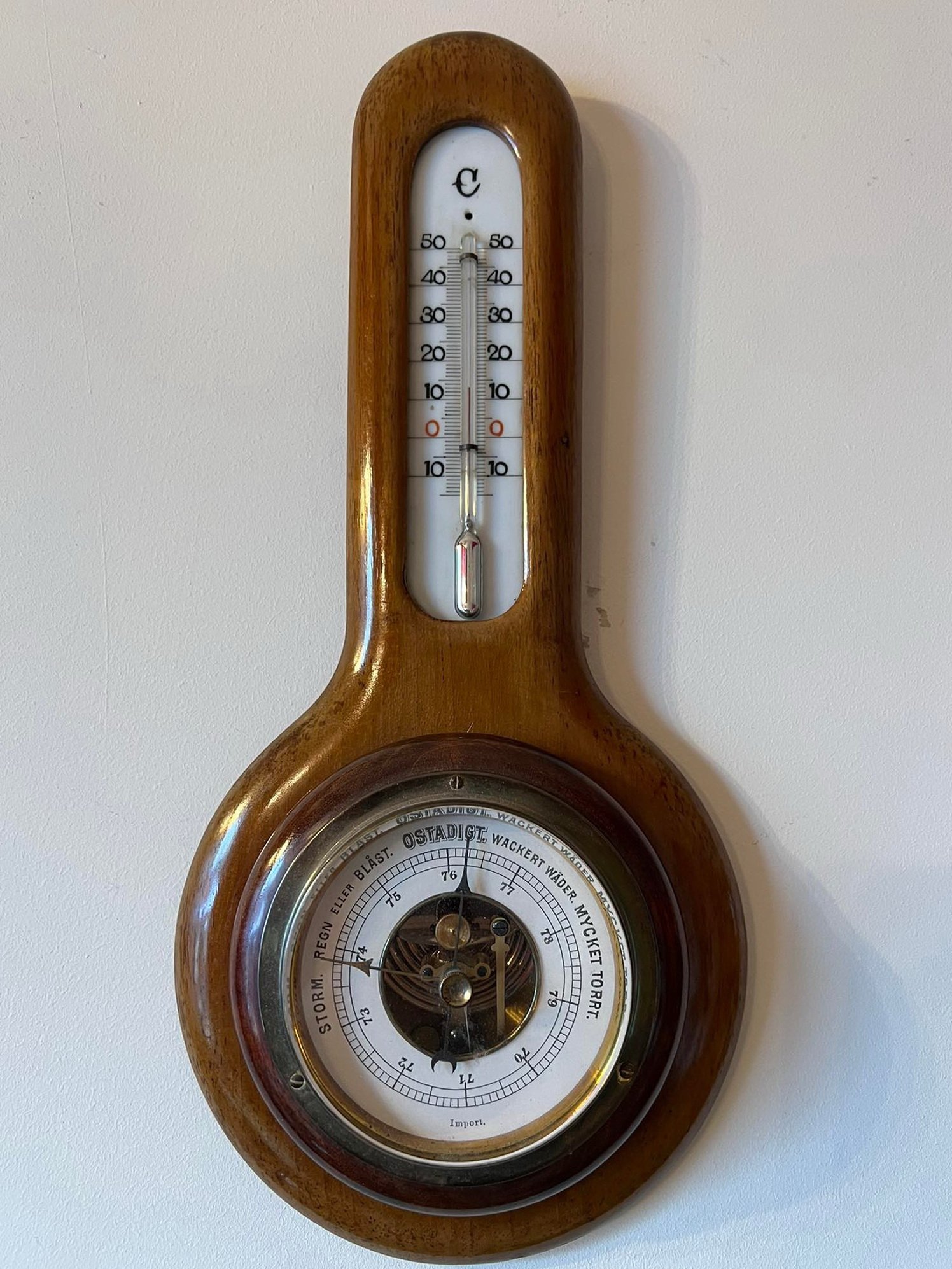 Barometras, termometras antikvarinis, medinis. Veikiantis. Kaina 38