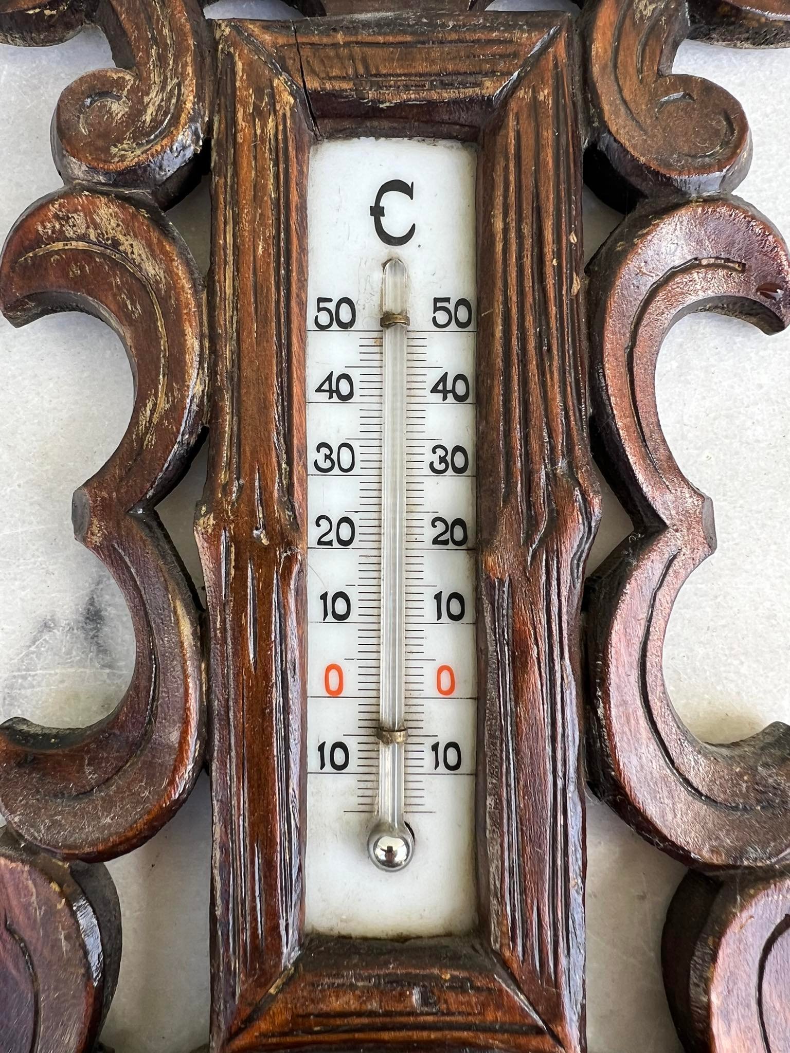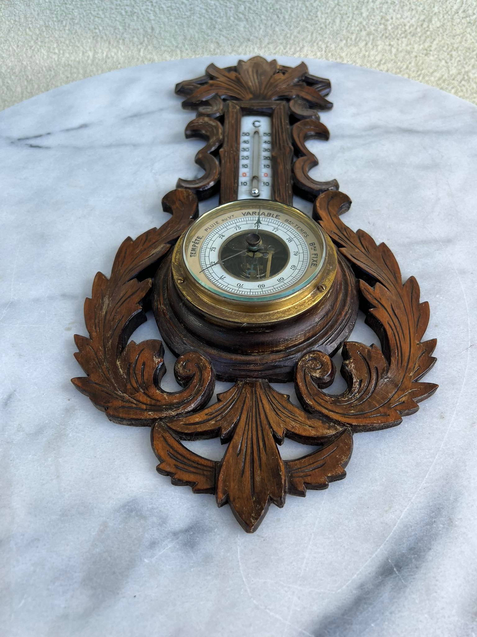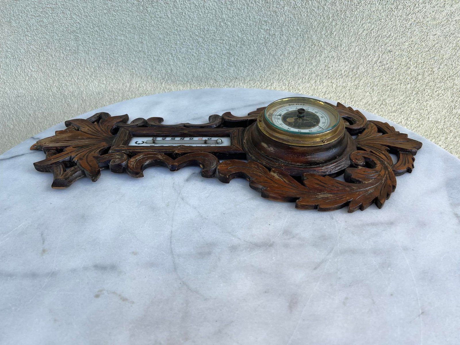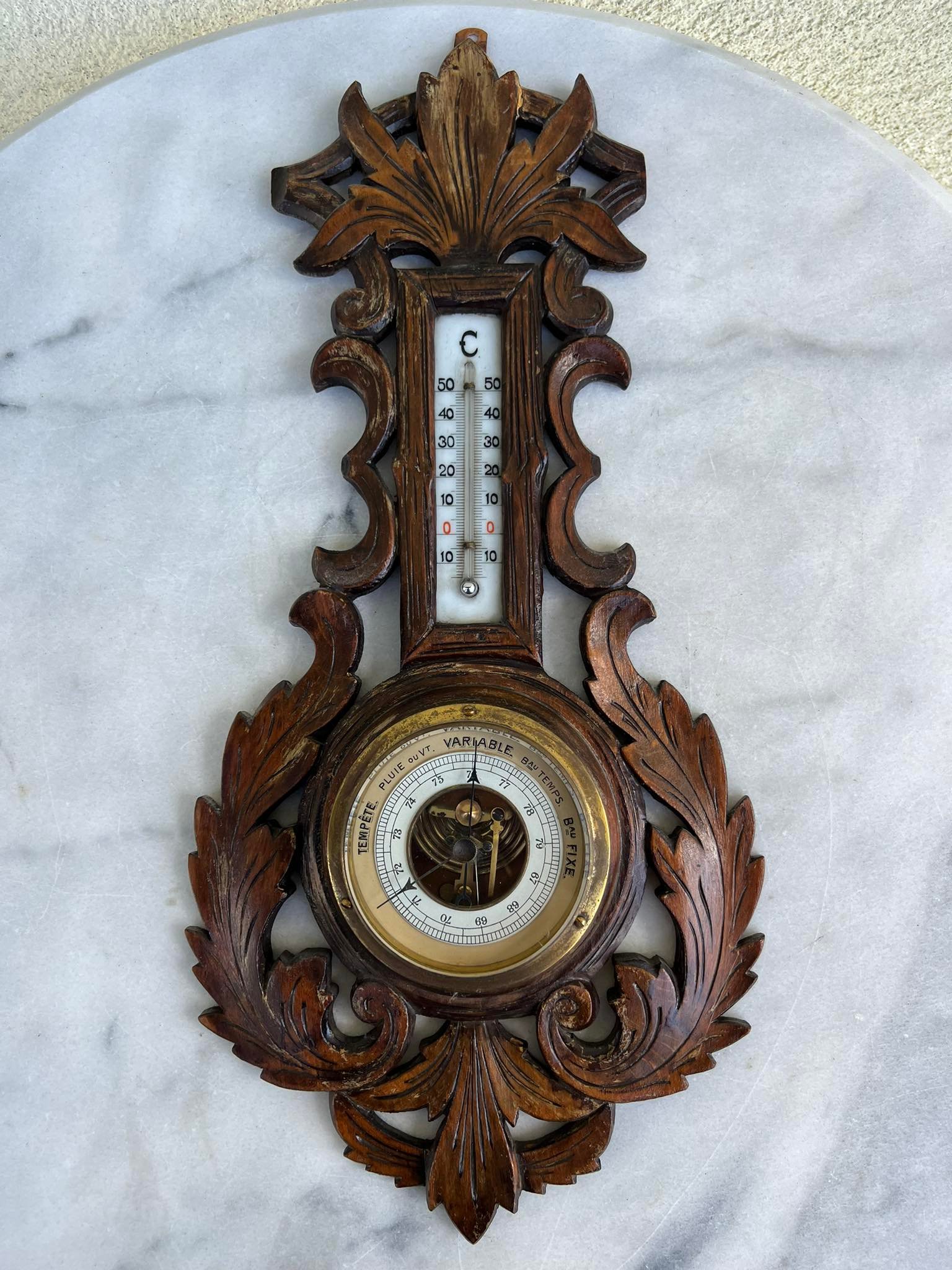 Barometras, termometras antikvarinis, medinis. Veikiantis. Kaina 78