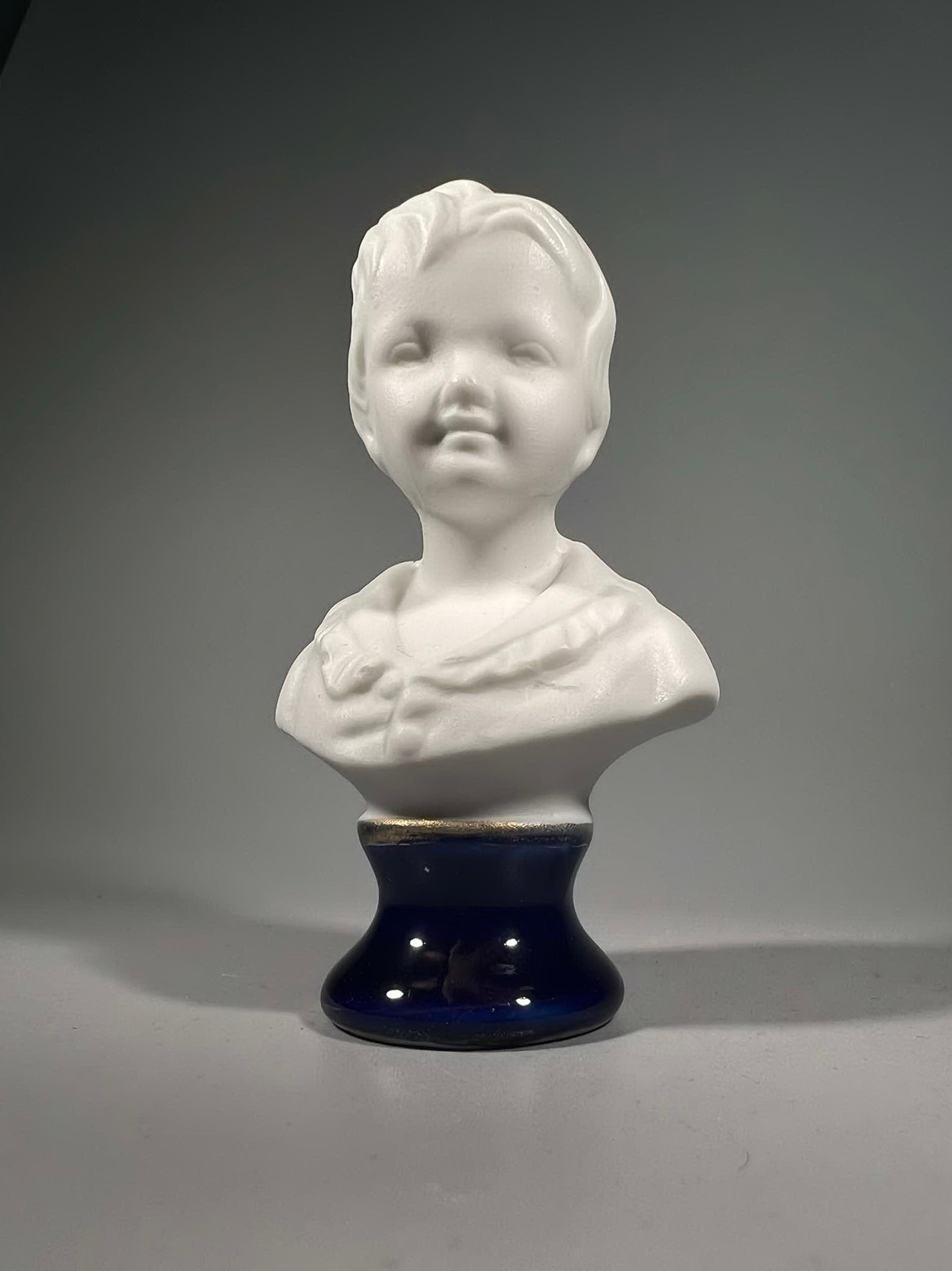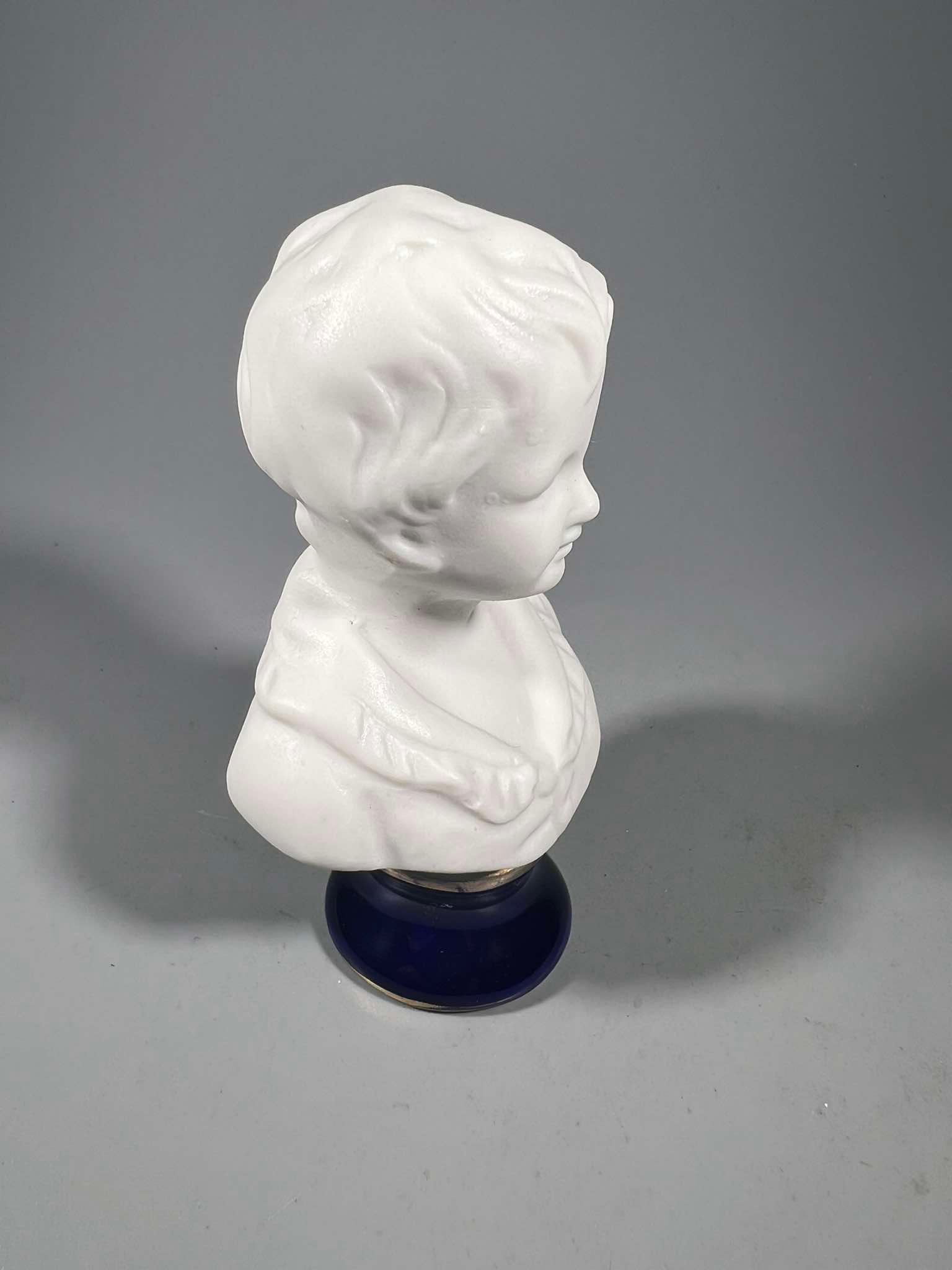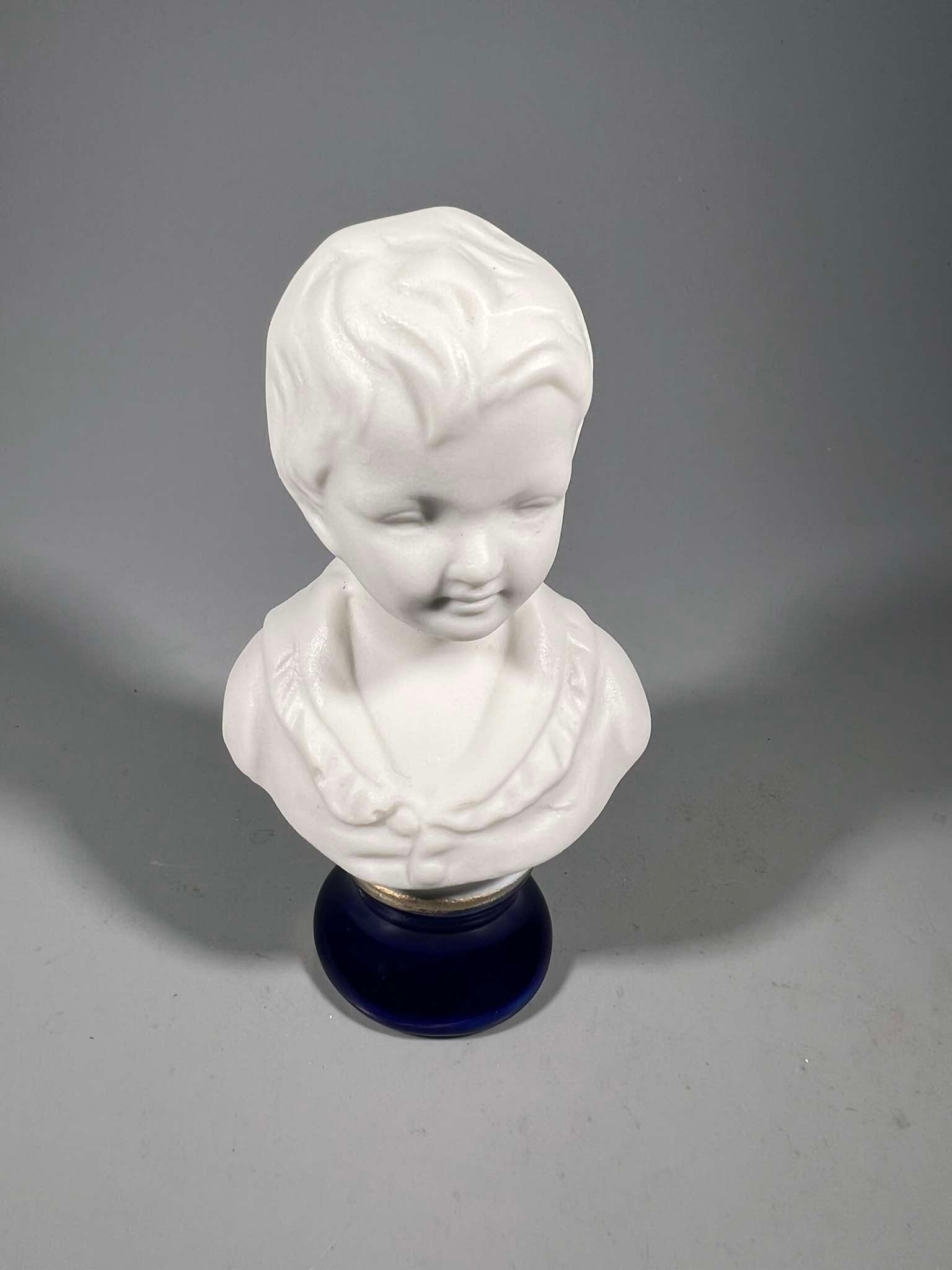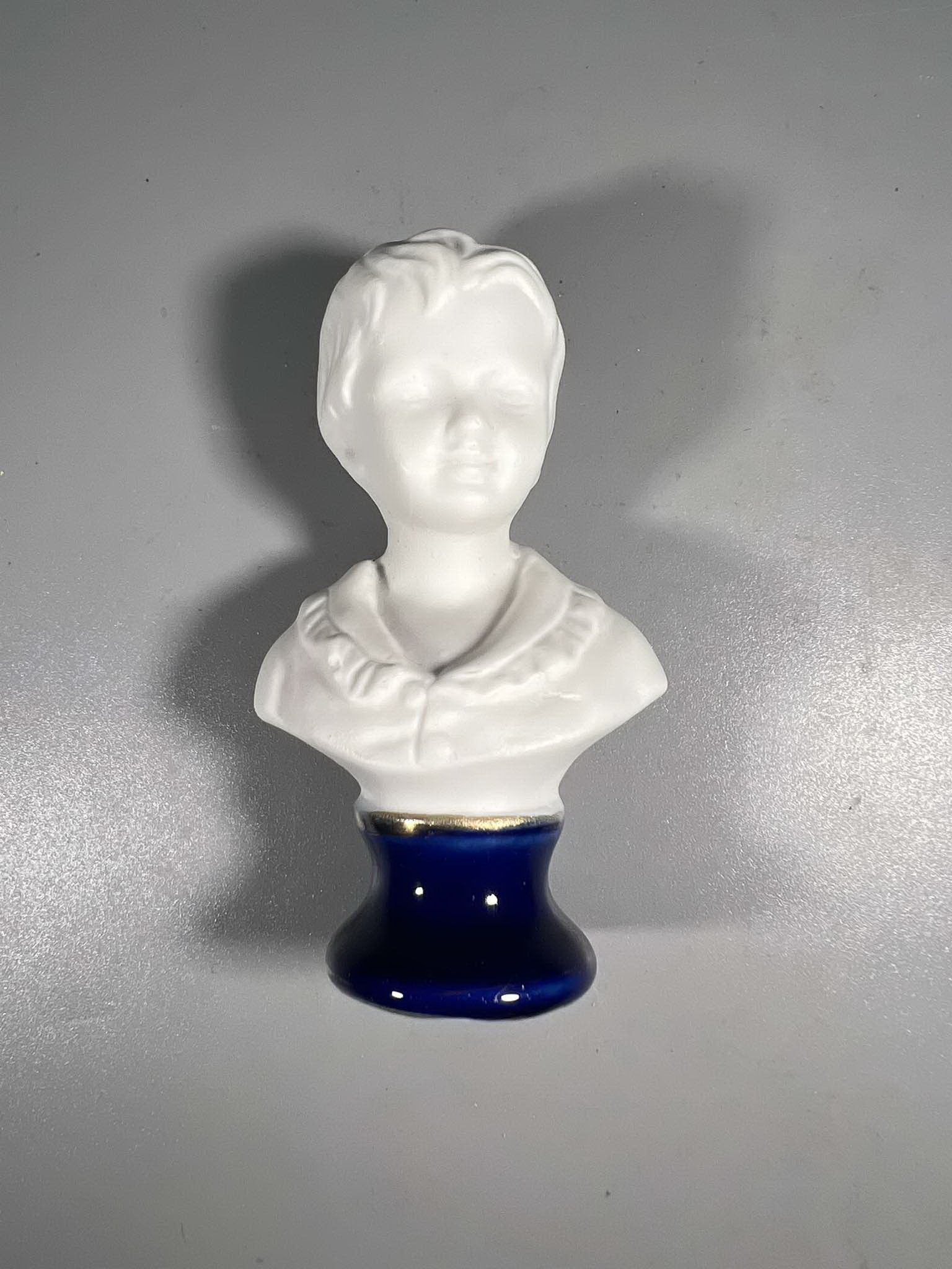 Biustas, statulėlė Berniukas porcelianinis, prancūziškas. Aukštis 9 cm. Kaina 16