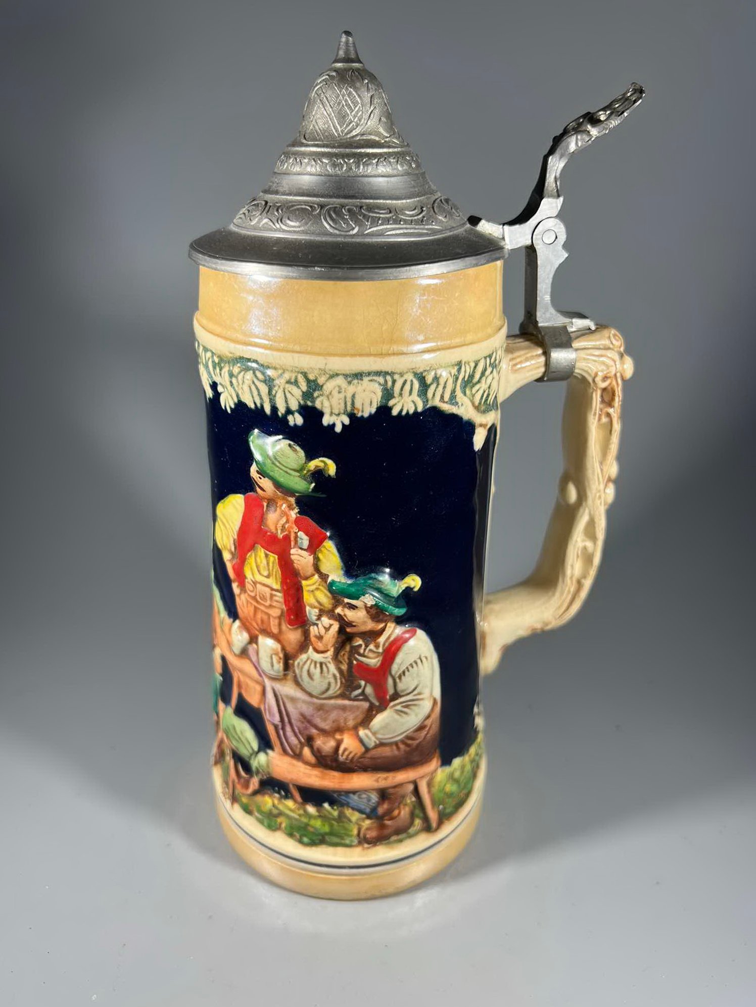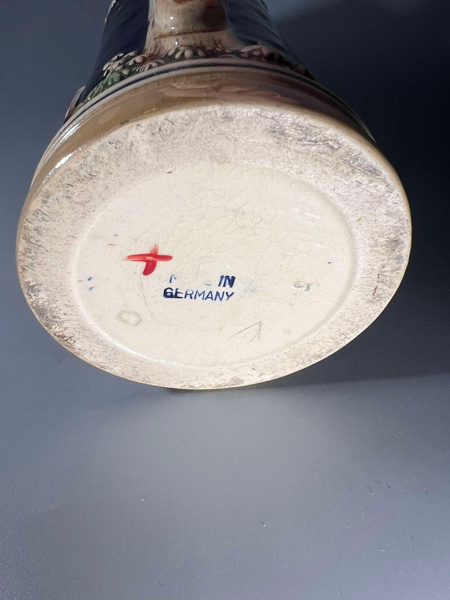Bokalas keraminis, glazūruotas su alaviniu dangčiu, vintažinis. Vokietija. Kaina 38