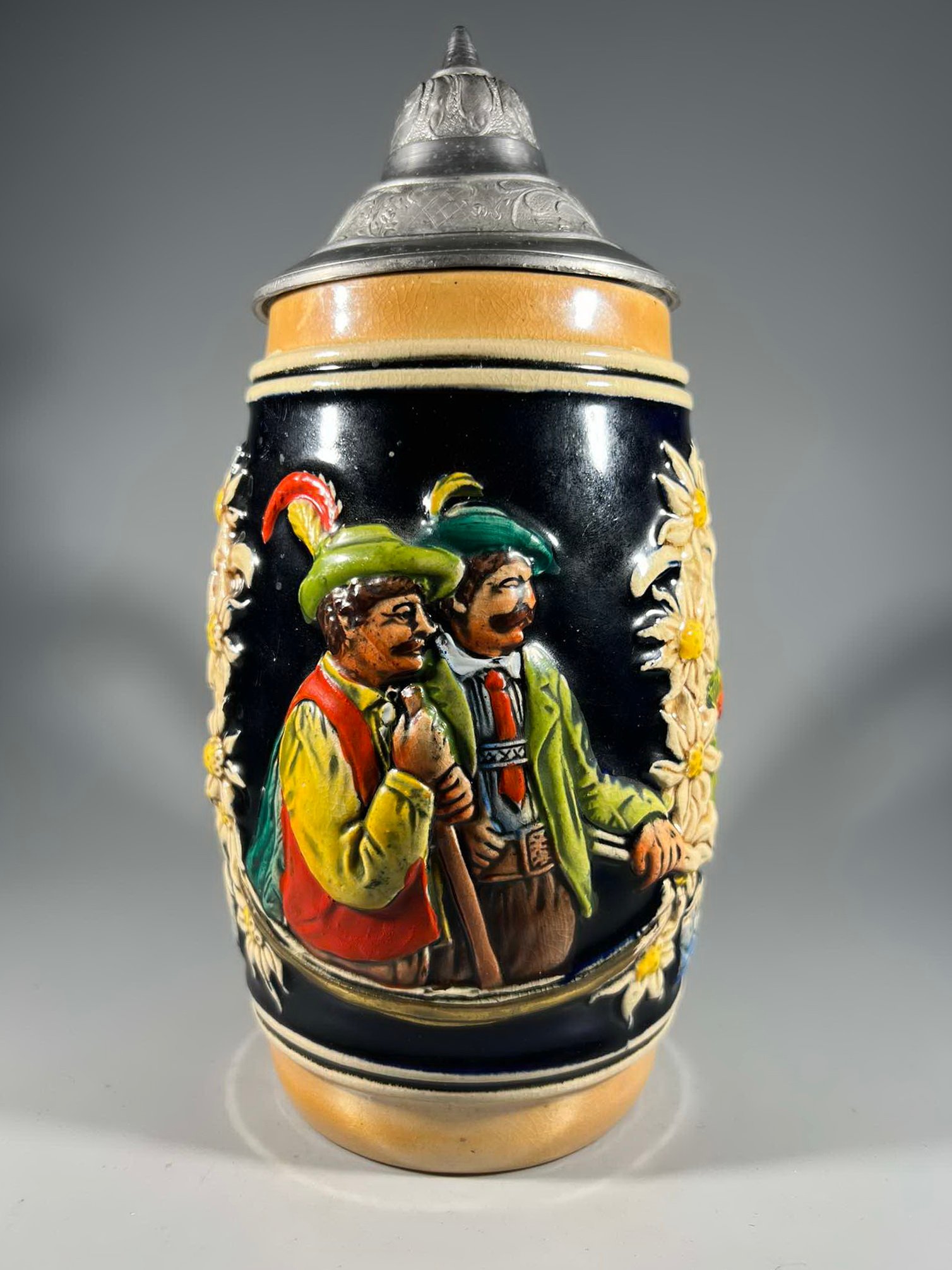 Bokalas keraminis, glazūruotas su alaviniu dangčiu, vintažinis. Vokietija. Kaina 43