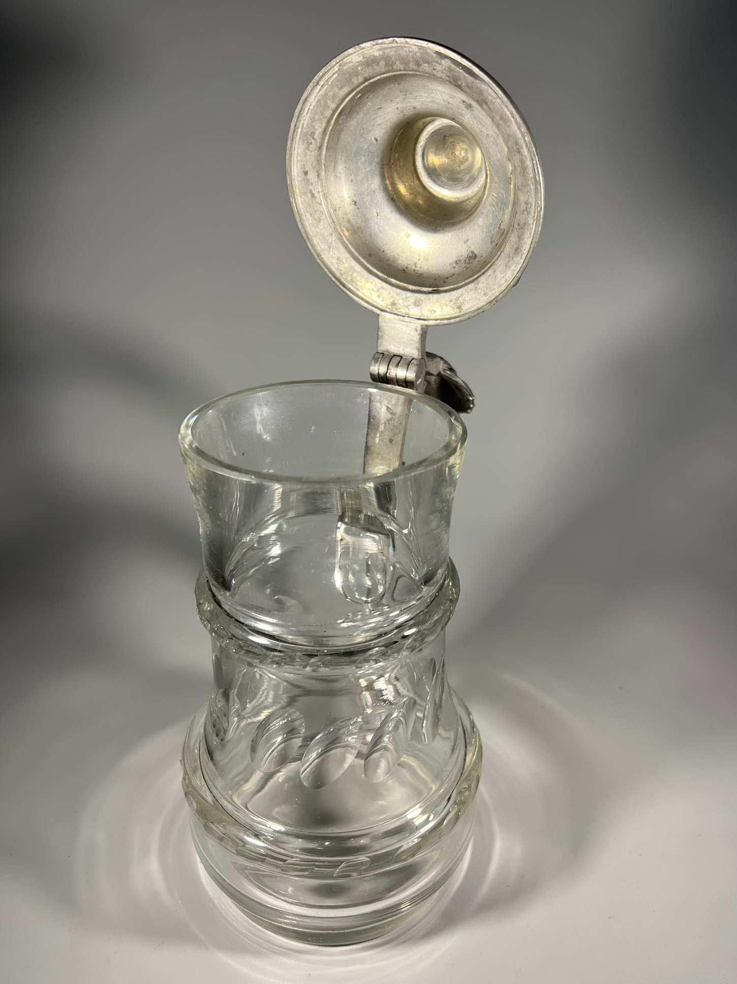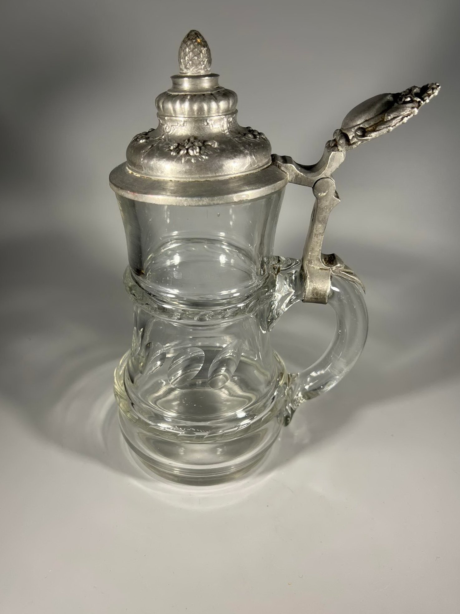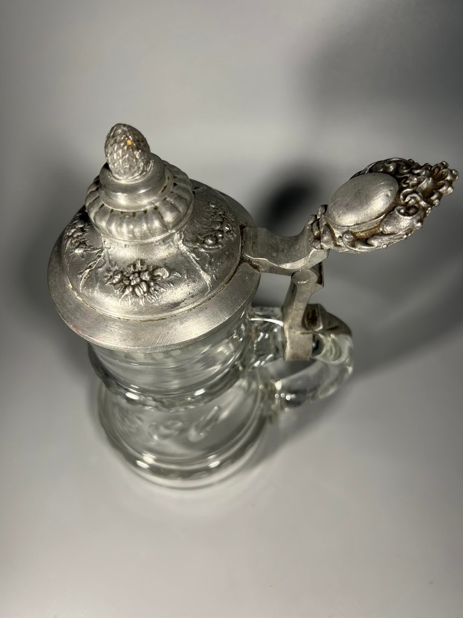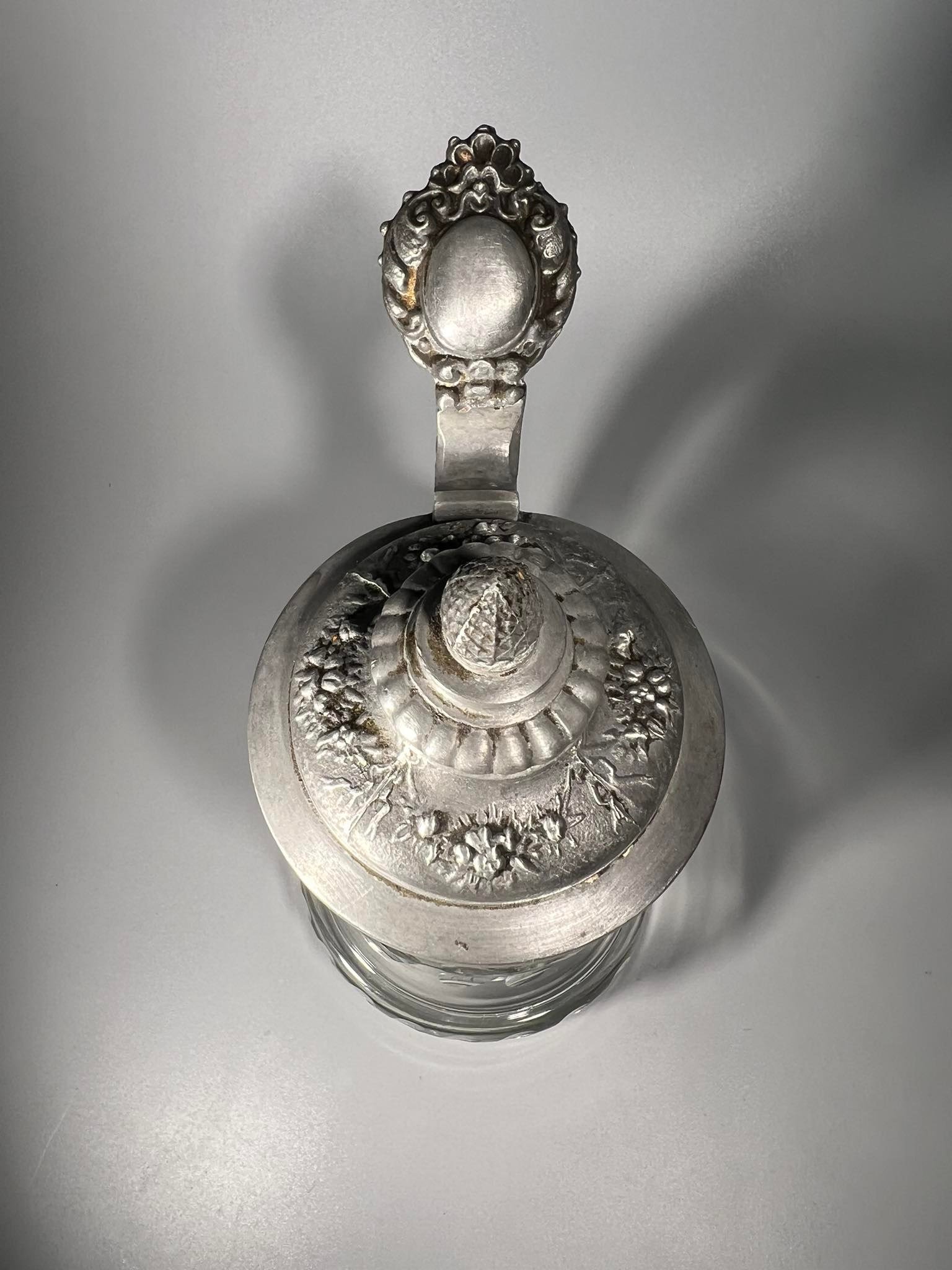 Bokalas su alaviniu dangteliu antikvarinis. 0,5 l. Kaina 38