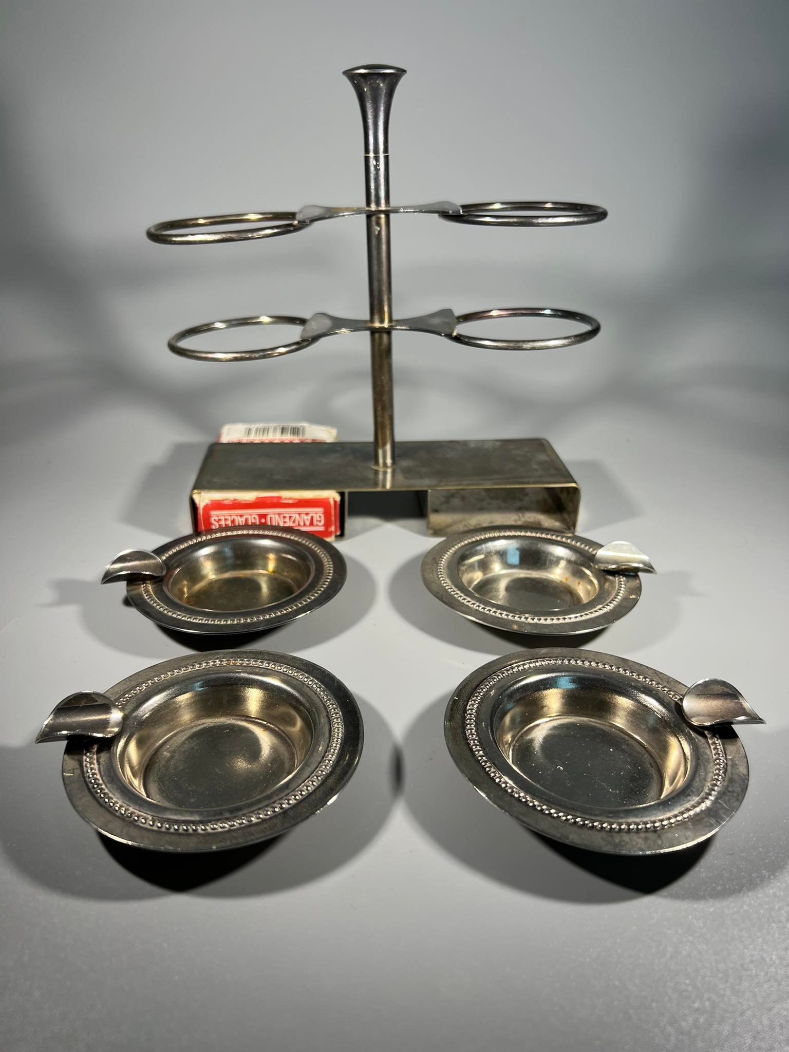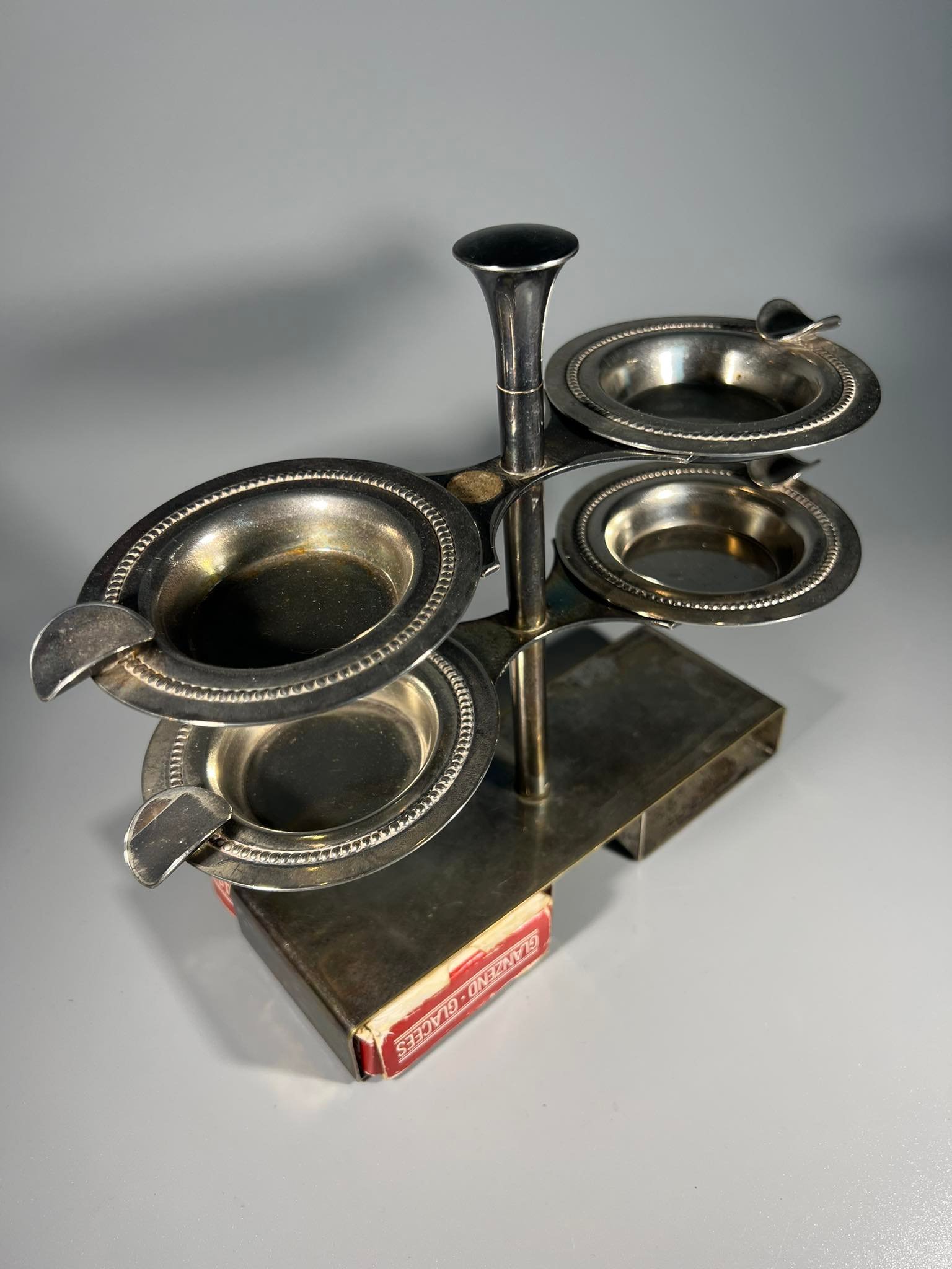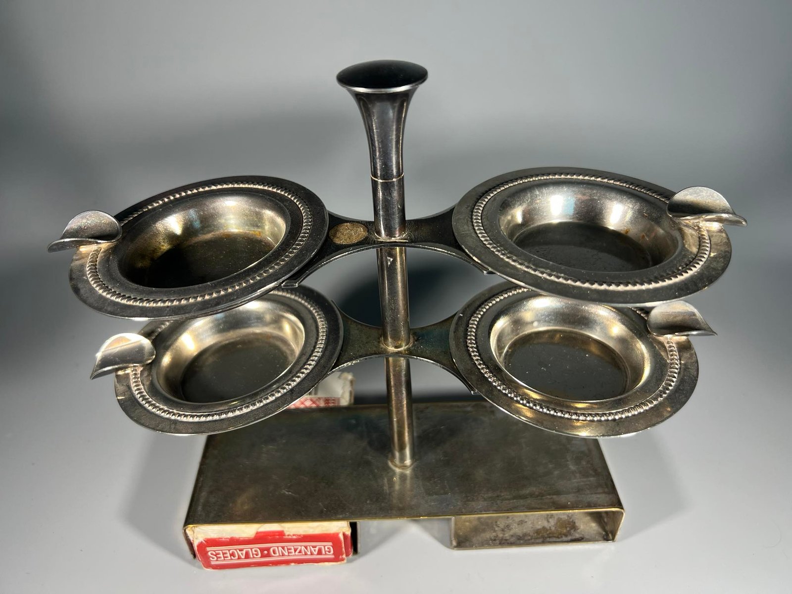 Bridžo kortų žaidimo peleninių ir kortų dėklas. Aukštis 20, ilgis 18, plotis 6 cm. Kaina 43
