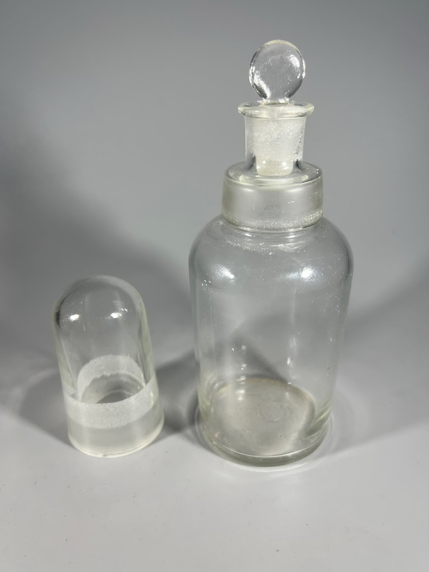 Butelis antikvarinis medicininis, vaistinės, vaistų su sandariu kamščiu ir taurele. Kaina 28