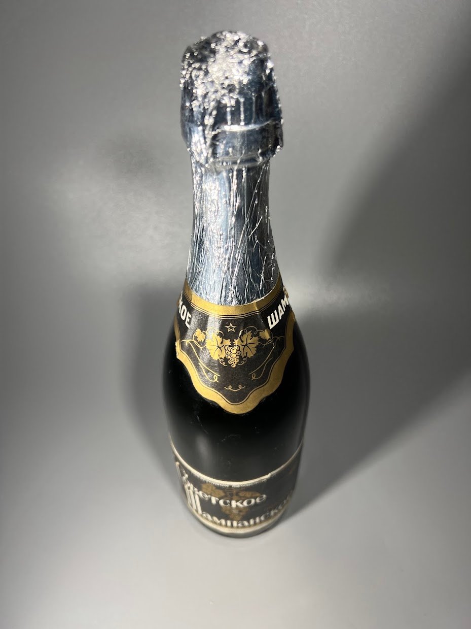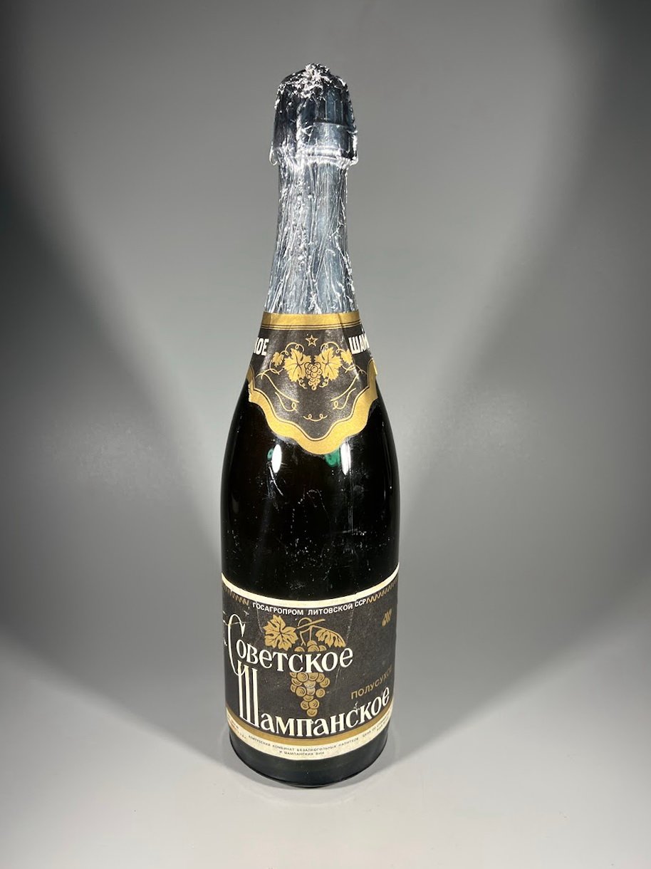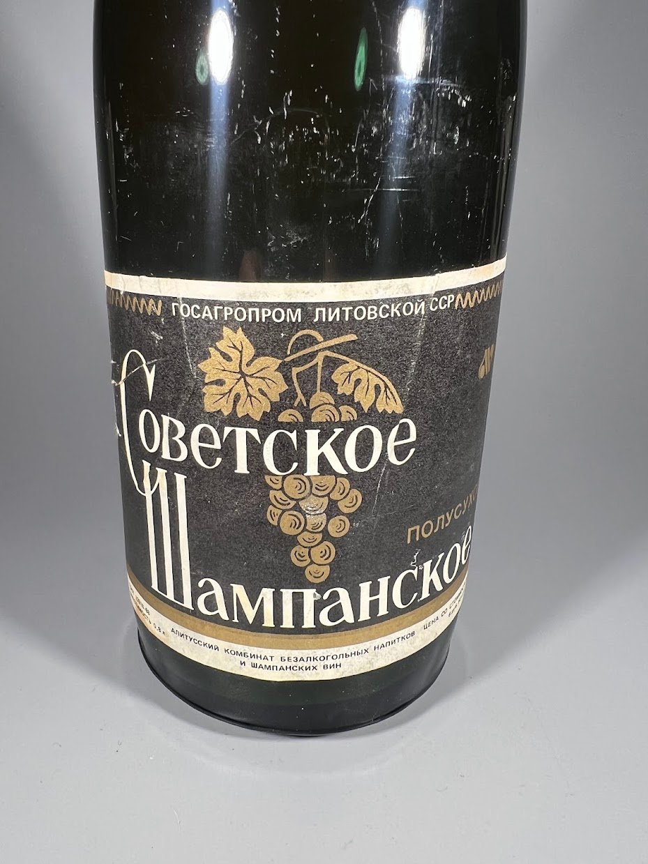 Butelis Sovietinis, tarybinių laikų šampanas, Sovietskoje sampanskoje, Советское Шампанское, Sovetskoye Shampanskoye, Soviet Champagne. Alytaus kombinatas, apie 1980 m. Nenaudota. Kaina 56