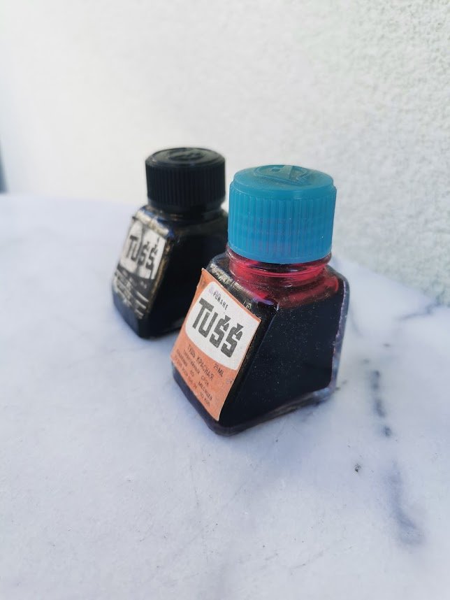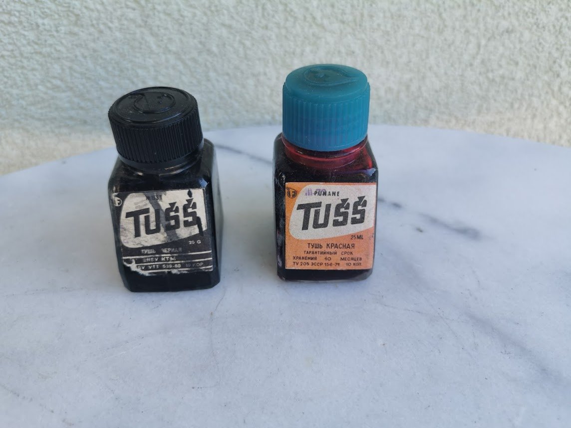 Buteliukai tušo, juodo ir raudono, tarybinių laikų. PARDUOTAS JUODAS. Kaina 7