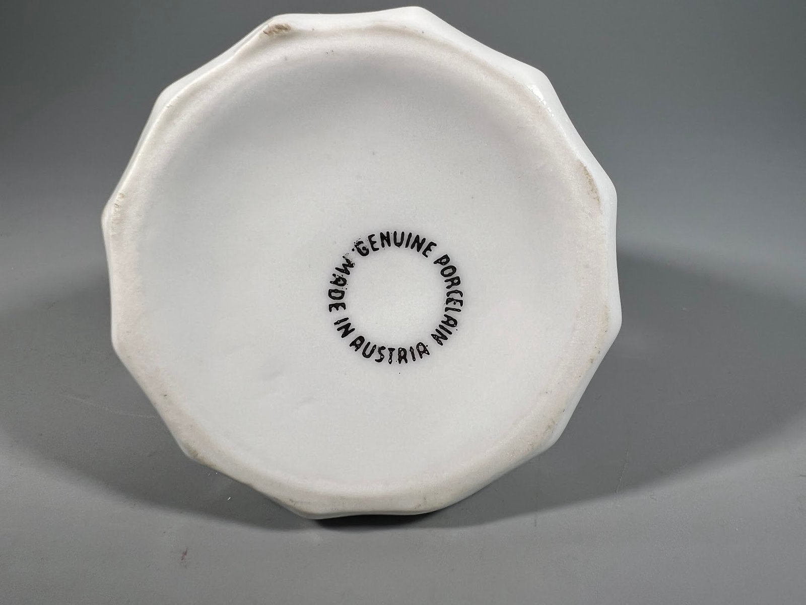 Buteliukas, purškiklis kvepalams, odekolonui porcelianinis, su gumine kriauše, purkštuku, Genuine Porcelain. Made in Austria, 1950–1970 m., vintažinis. Veikiantis. Kaina 33