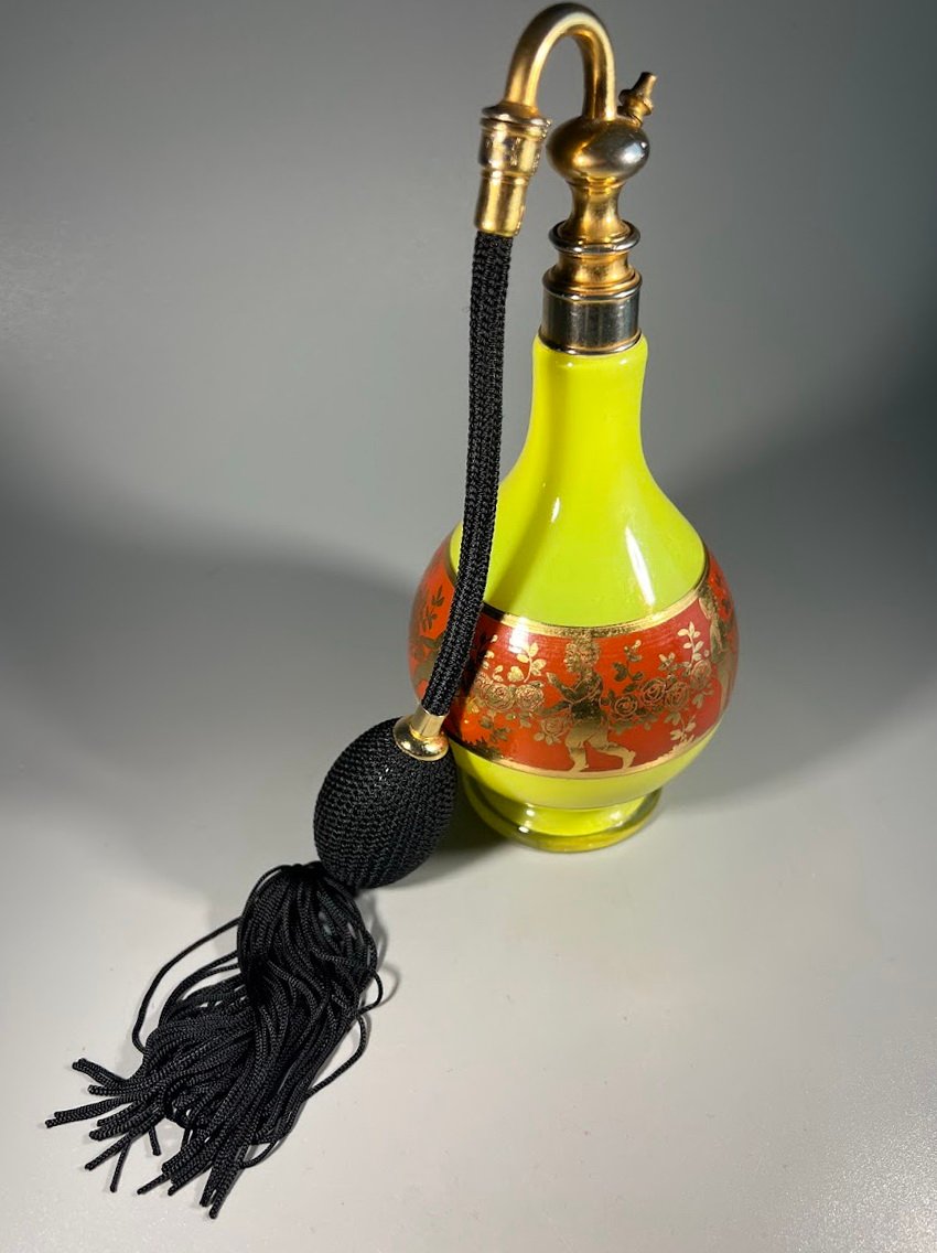 Buteliukas, purškiklis kvepalams, odekolonui su gumine kriauše, purkštuku, Art Deco stiliaus, vintažinis. Veikiantis. Kaina 63