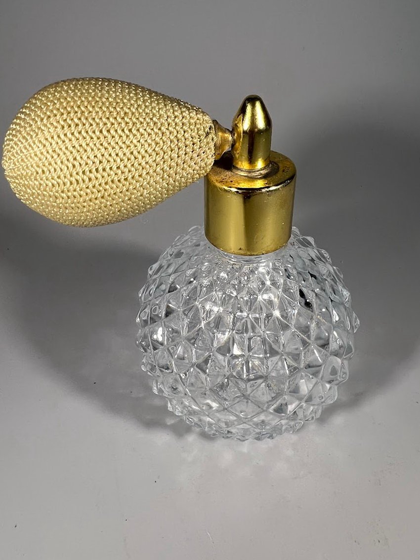 Buteliukas, purškiklis kvepalams, odekolonui su gumine kriauše-purkštuku, vintažinis. Veikiantis. Kaina 22