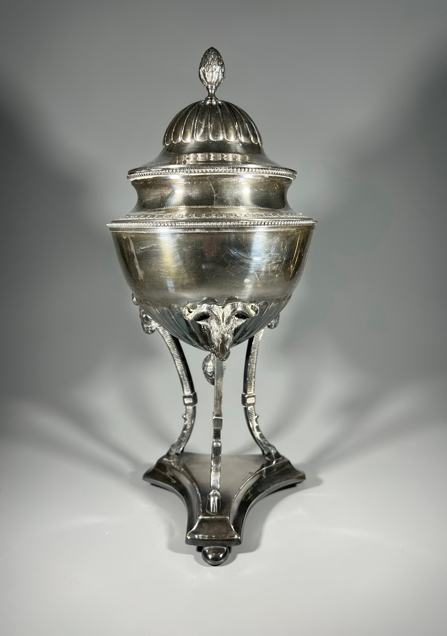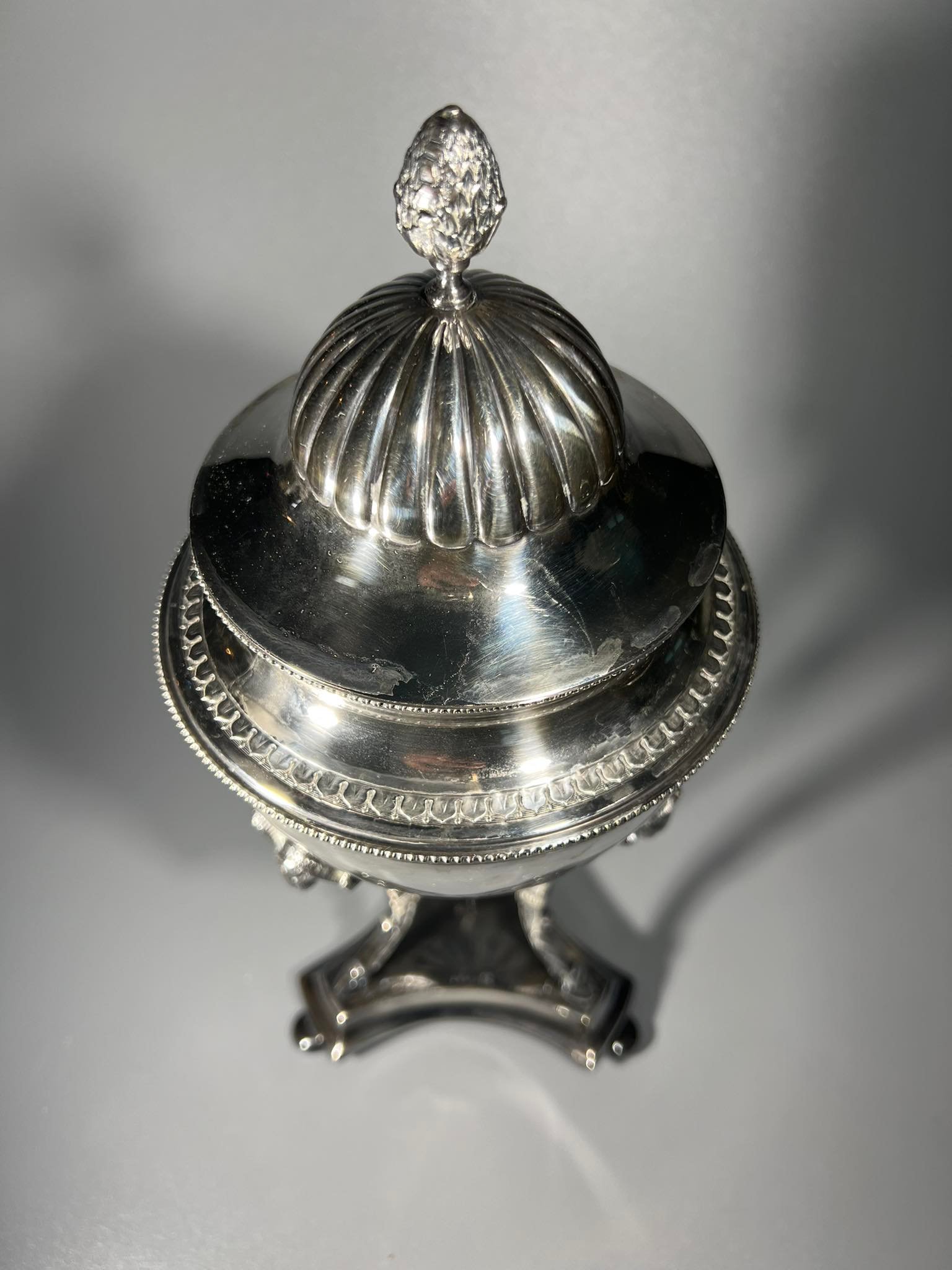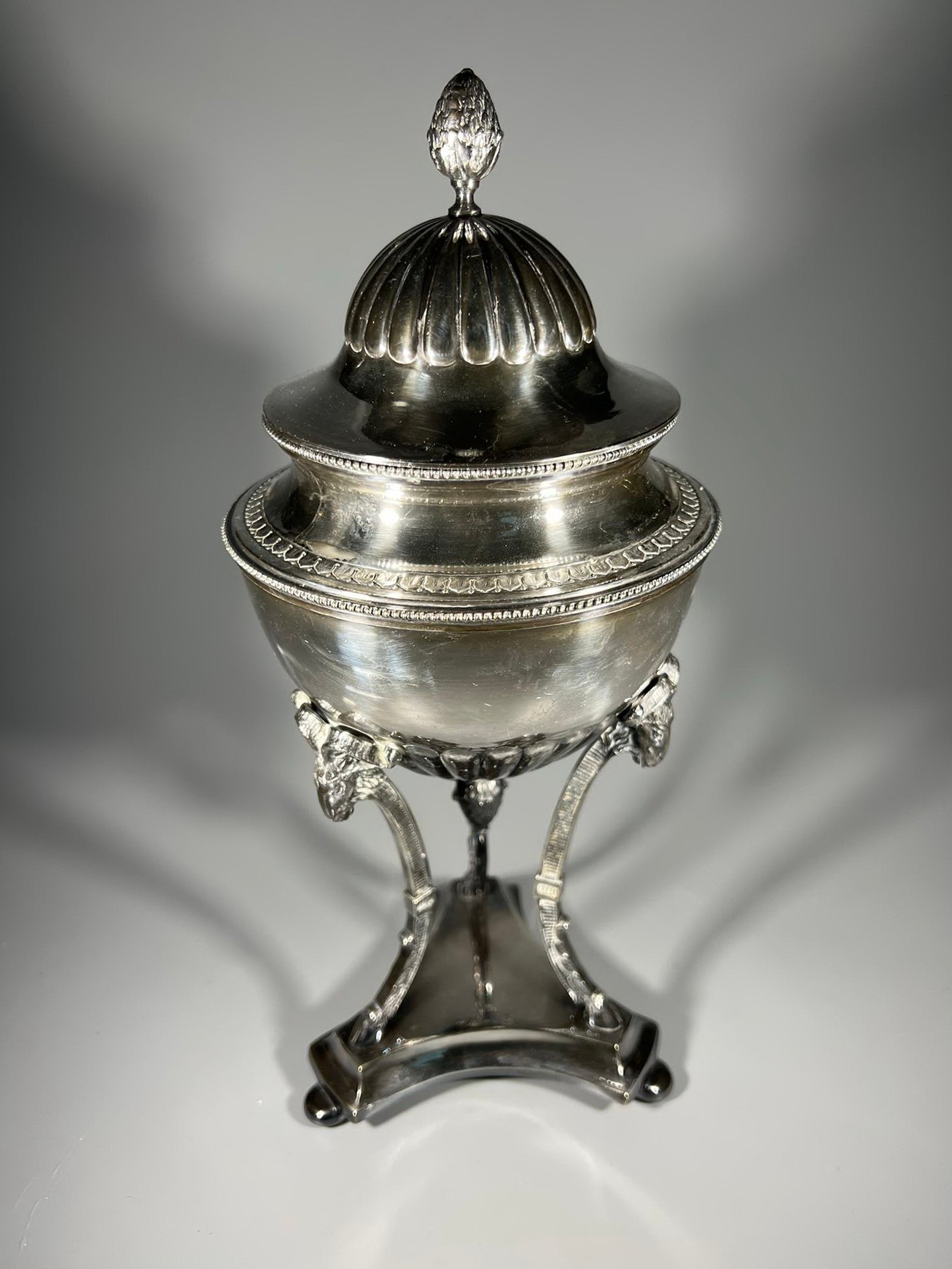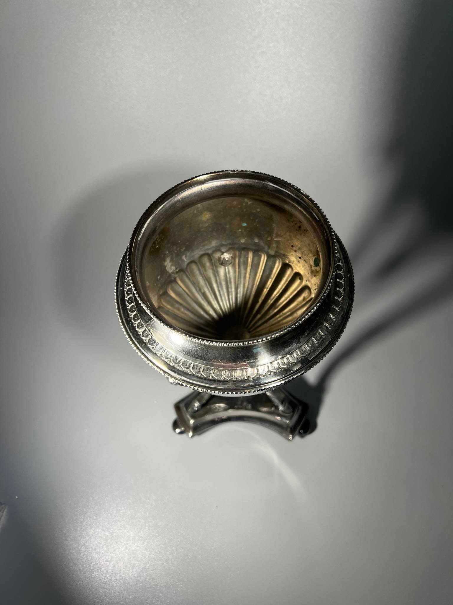 Cukrinė antikvarinė, sidabruota, sidabruotas indas. G.A.B.H. Aukštis 32 cm. Kaina 73