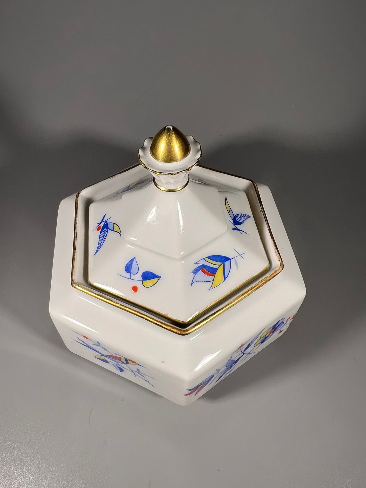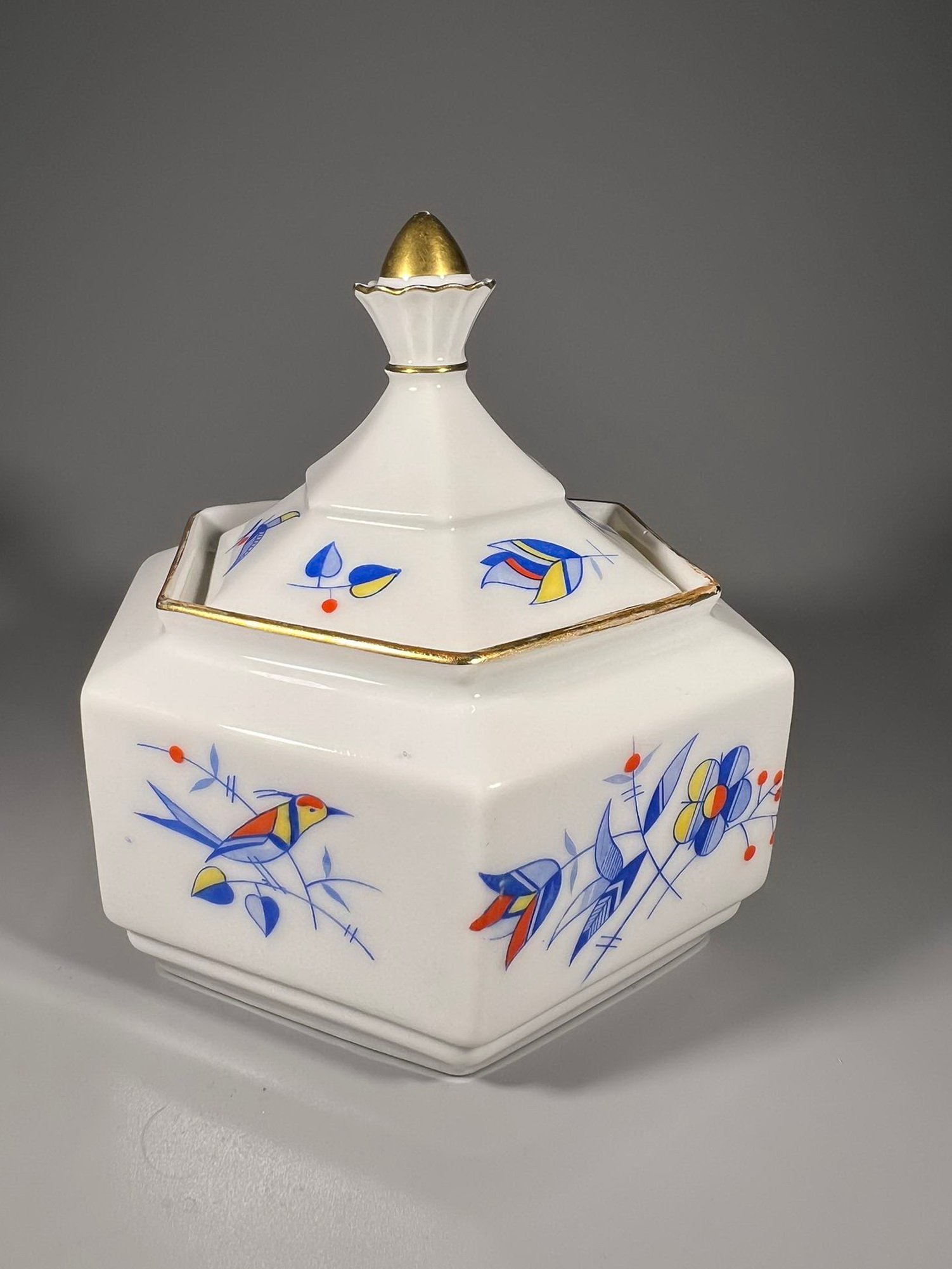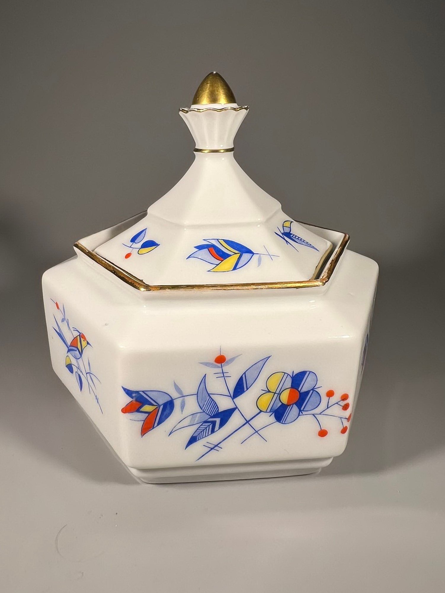 Cukrinė porcelianinė, antikvarinė Secesijos stiliaus, Ullersricht porceliano manufaktūrai, Weiden, Bavarija. 1925 m. Kaina 36