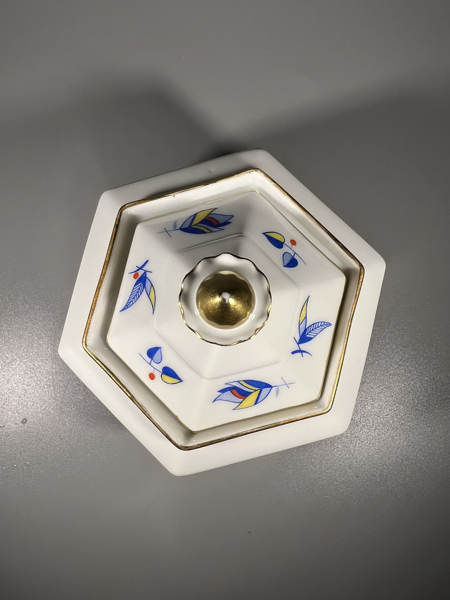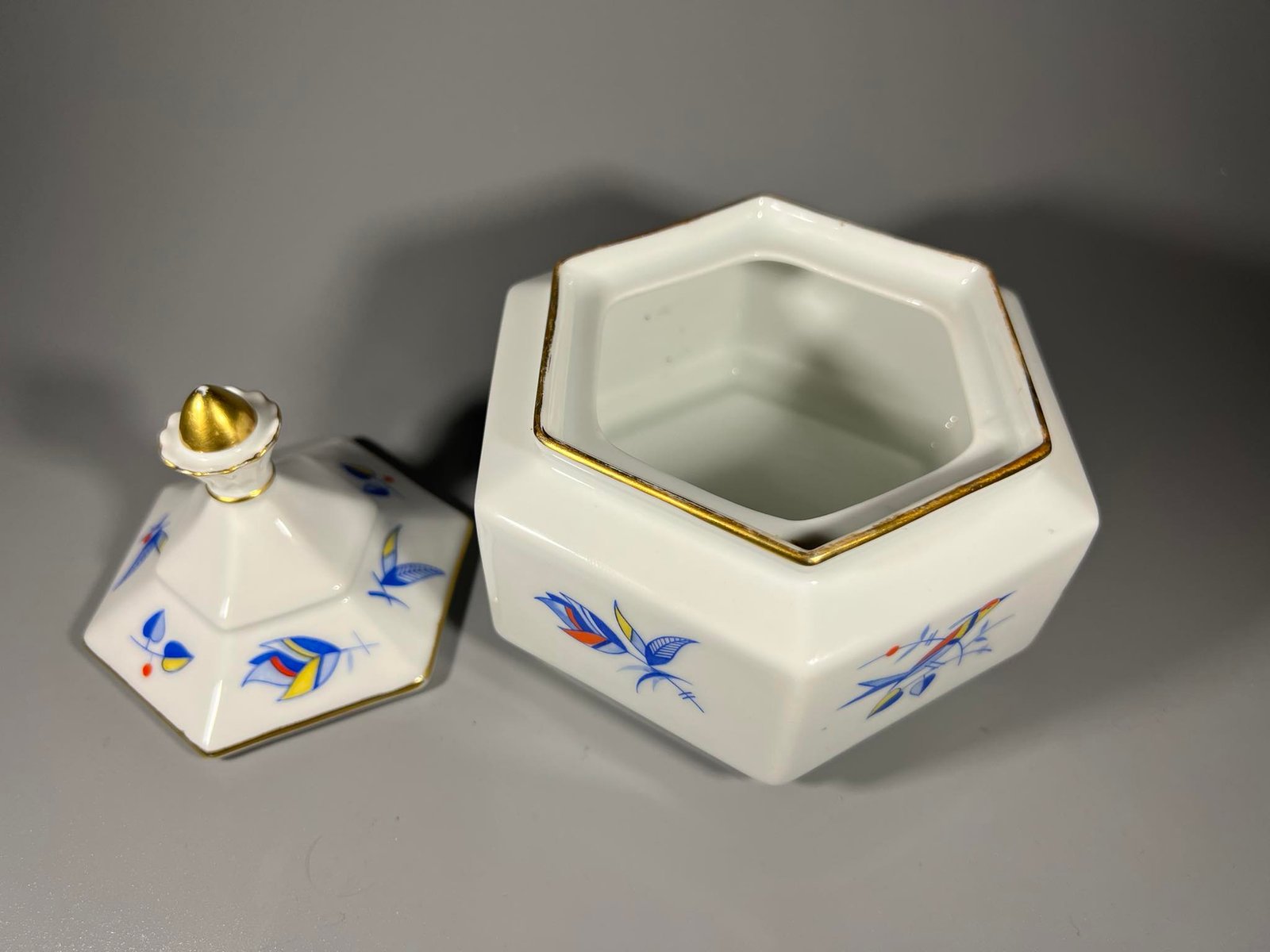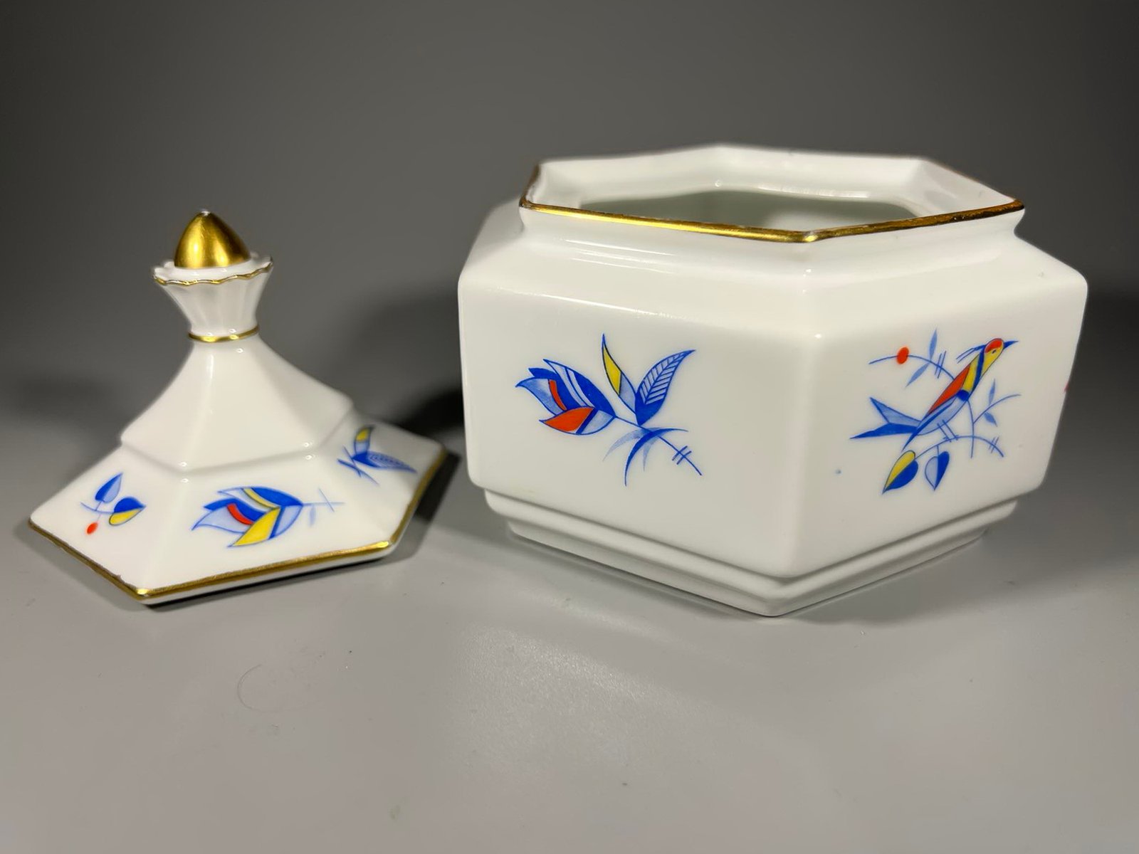 Cukrinė porcelianinė, antikvarinė Secesijos stiliaus, Ullersricht porceliano manufaktūrai, Weiden, Bavarija. 1925 m. Kaina 36