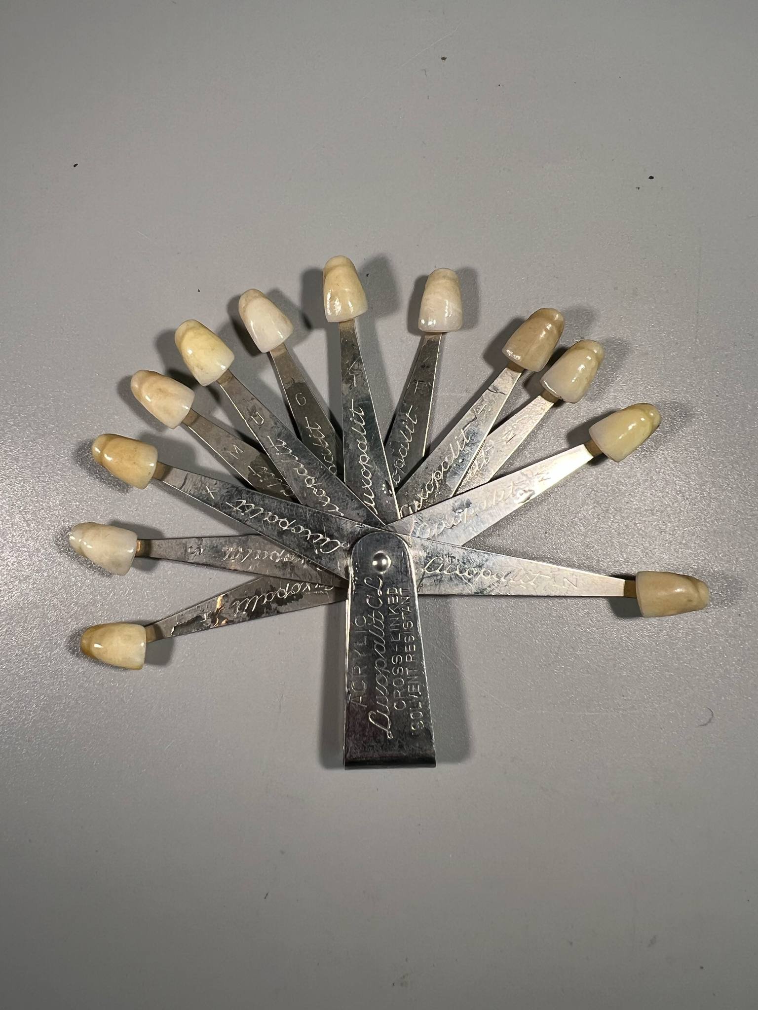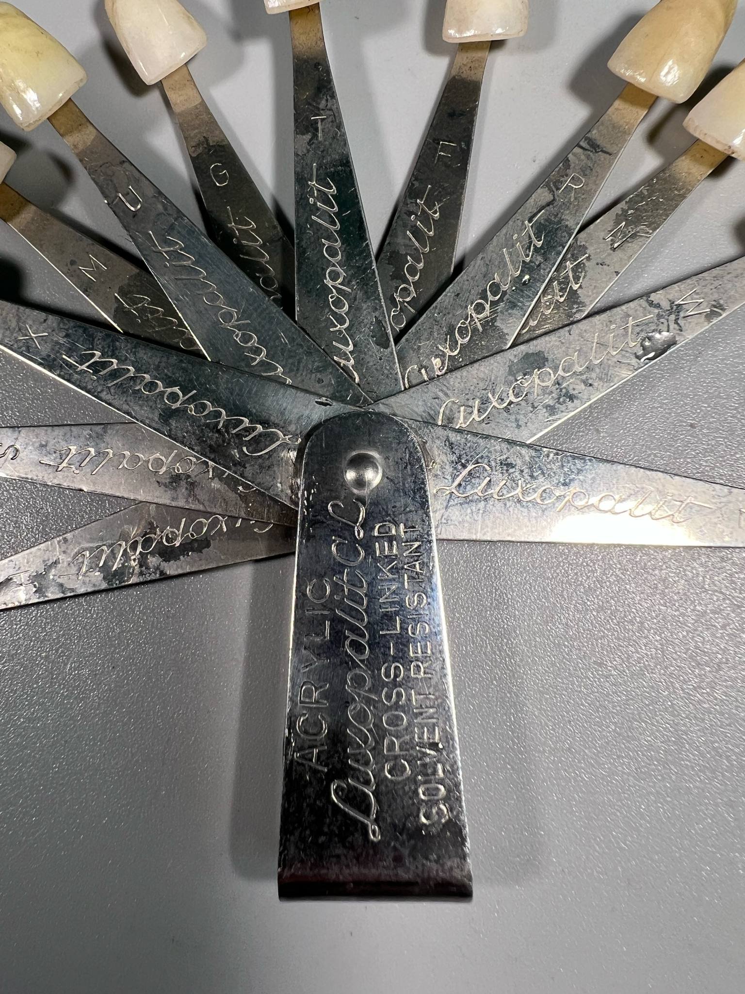 Dantų spalvų paletė (atspalvių rinkinys), antikvarinė, odontologinė, vokiška ZAHNFABRIK BAD NAUHEIM K.G. BAD NAUHEIM/GERMANY. LUXOPAL. 1950-1970 m. Kaina 48