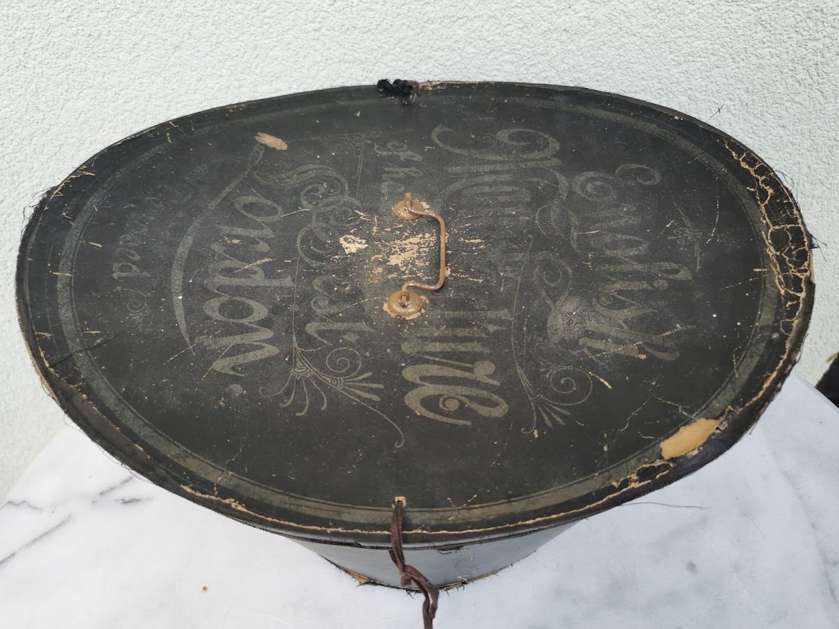 Dėžė cilindro – skrybėlės antikvarinė. Kaina 22