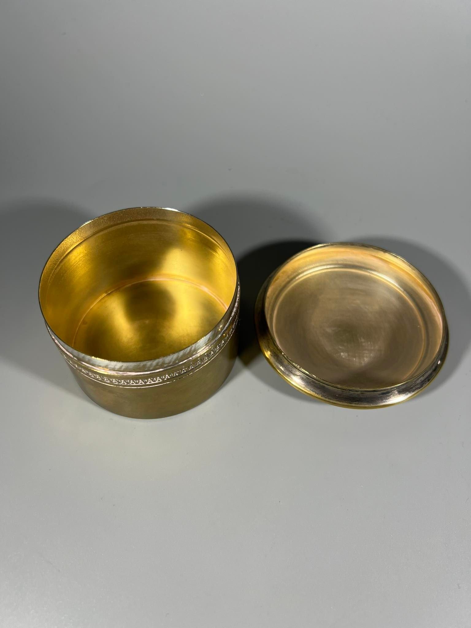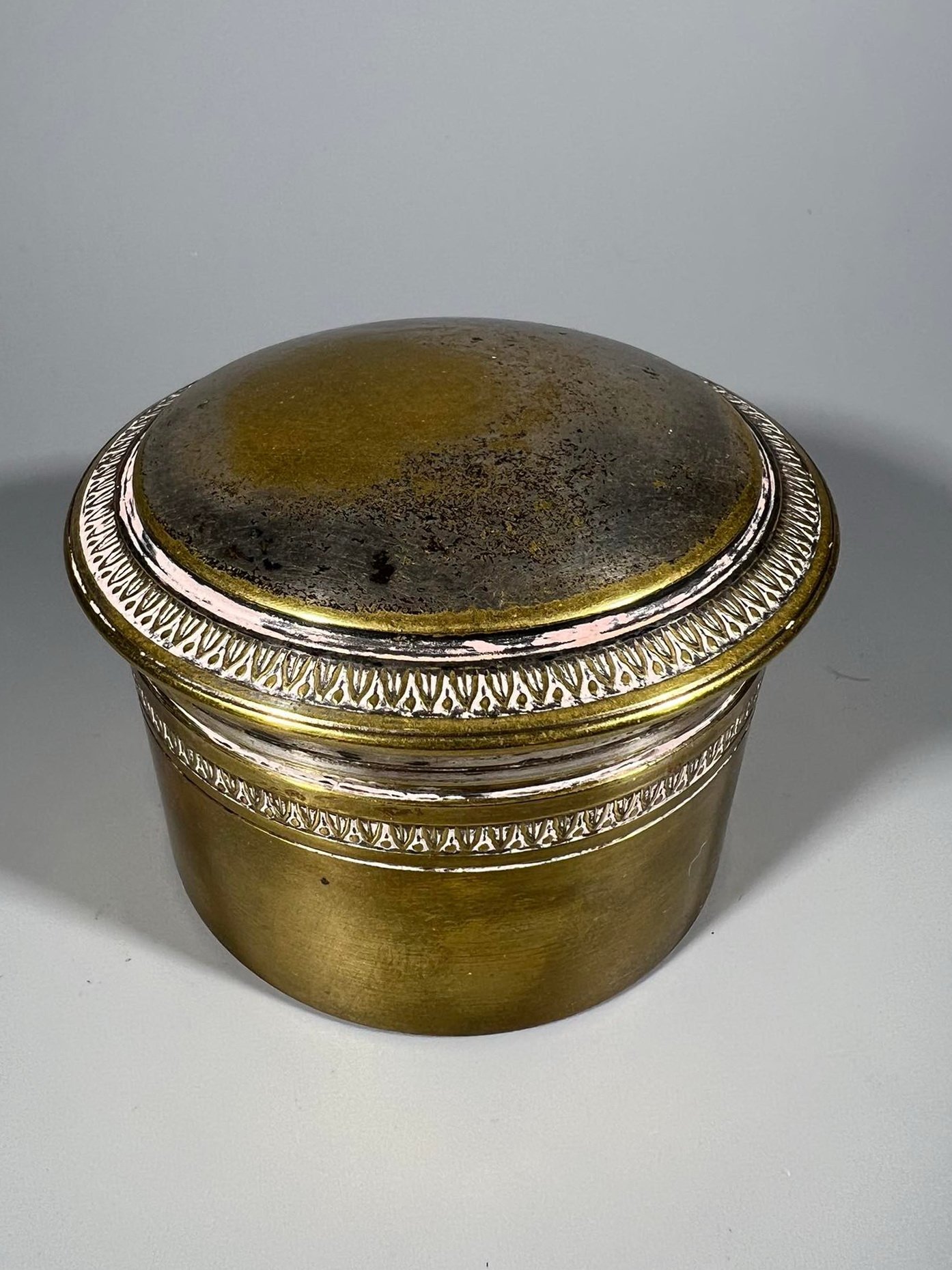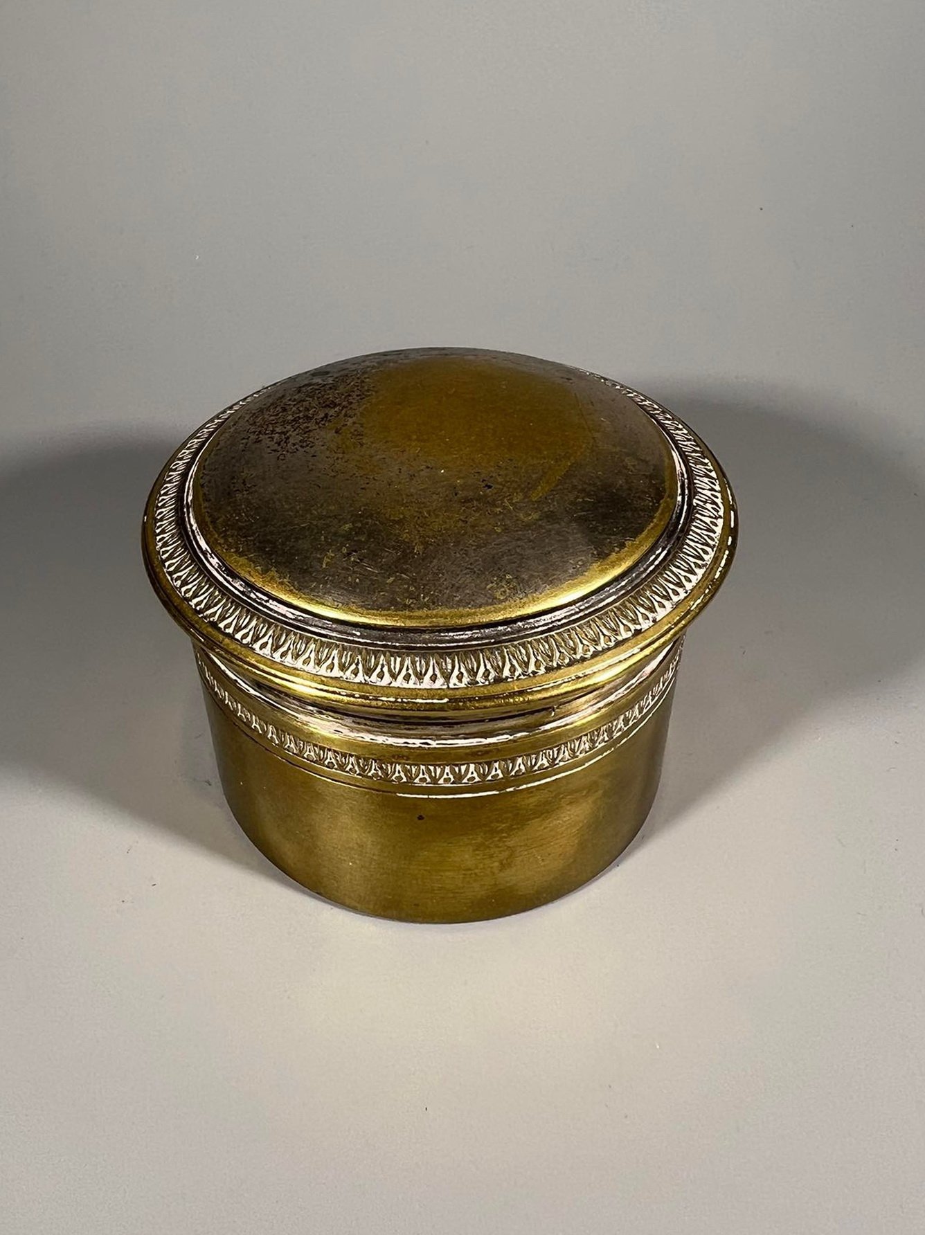 Dėžutė antikvarinė, sidabruota. Aukštis 5,5, skersmuo 7 cm. Kaina 23