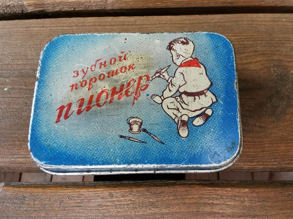 Dėžutė dantų valymo miltelių tarybinė Pionier. Maskva. Kaina 22