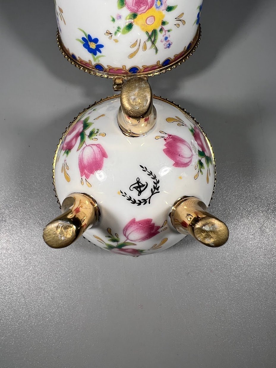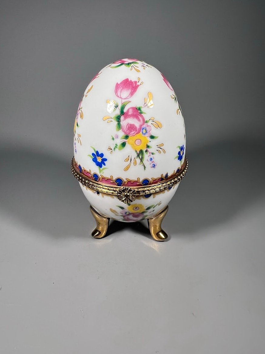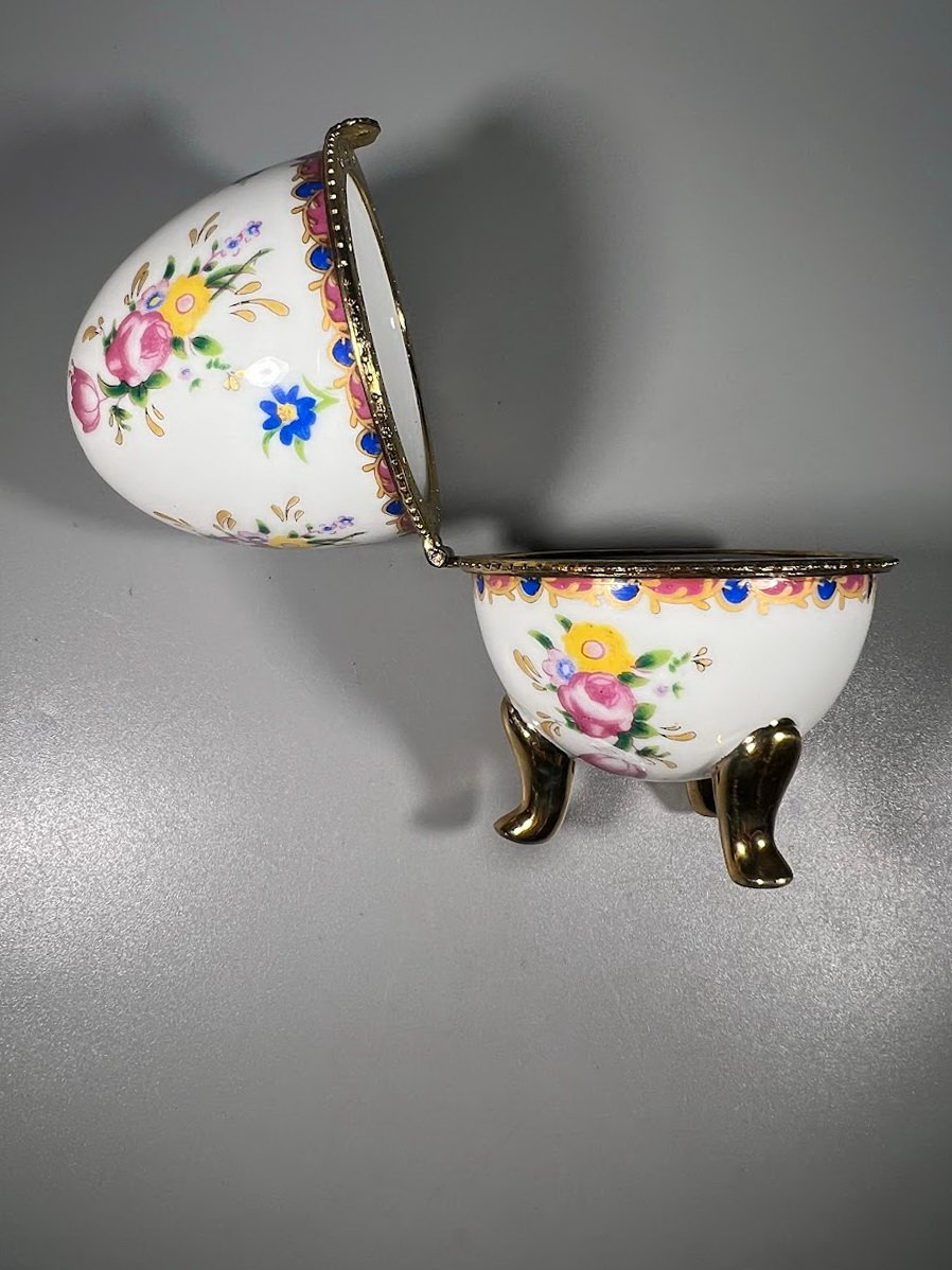 Dėžutė Kiaušinis porcelianinis, kolekcinis puošta gėlėmis. Aukštis 10 cm. Kaina 38