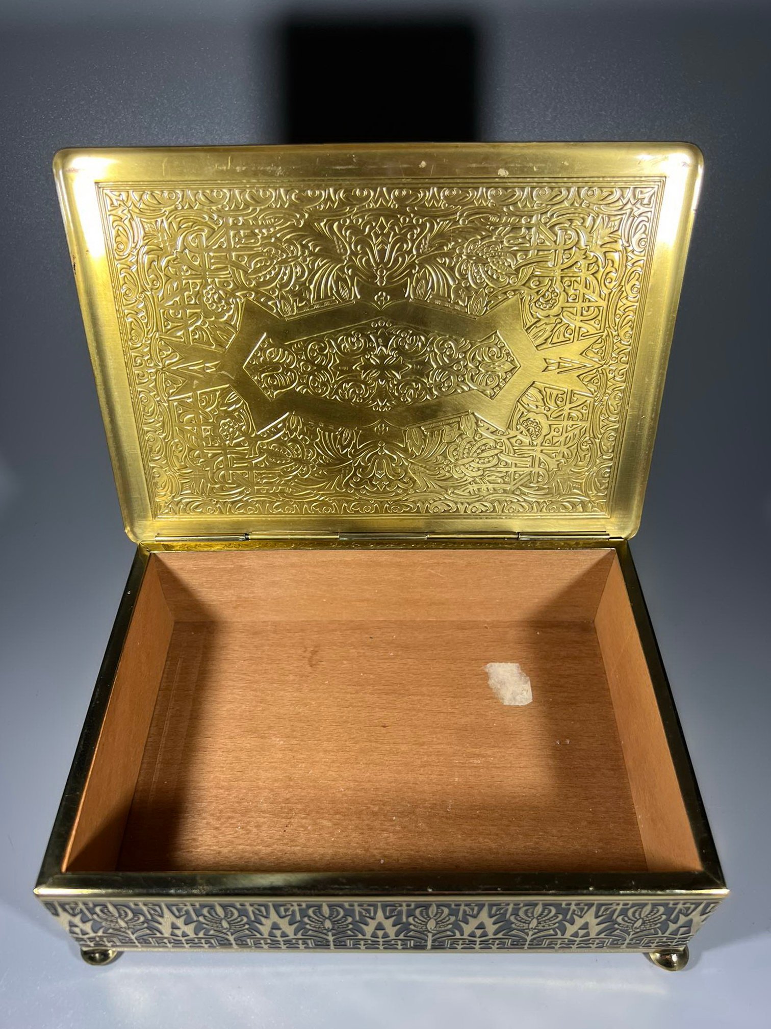 Dėžutė metalinė mediniu vidumi, vintažinė. Dydis: 6 x 14 x 20 cm. Kaina 48