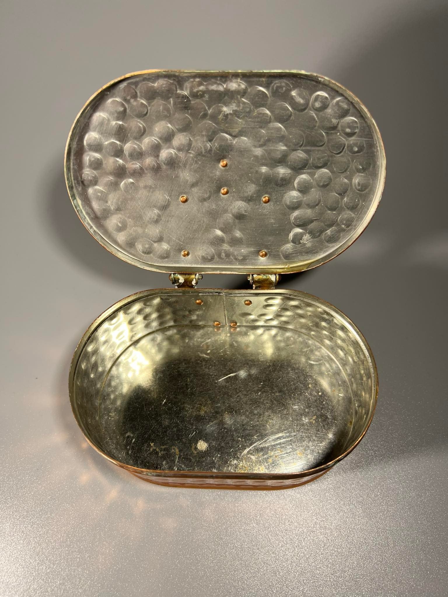 Dėžutė metalinė, vintažinė. Ilgis 12, plotis 7,5, aukštis 6 cm. Kaina 23