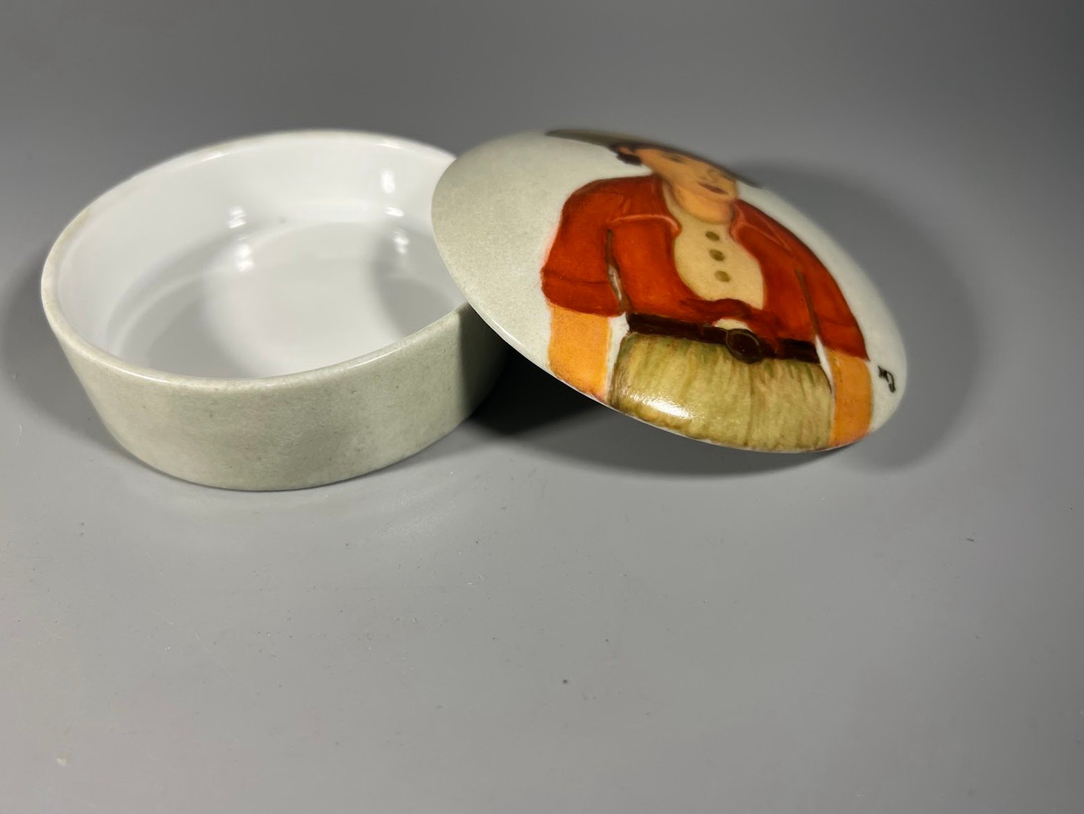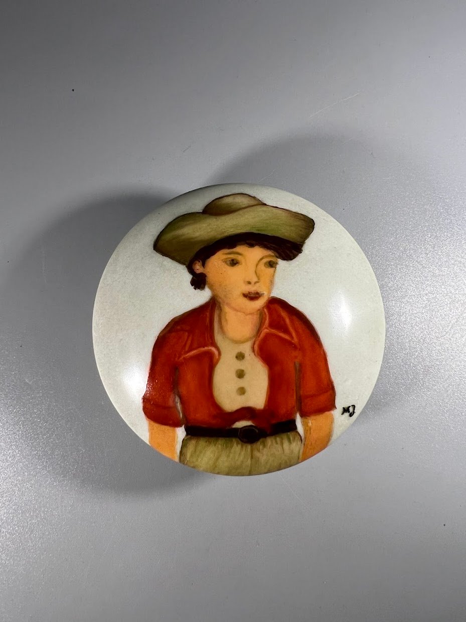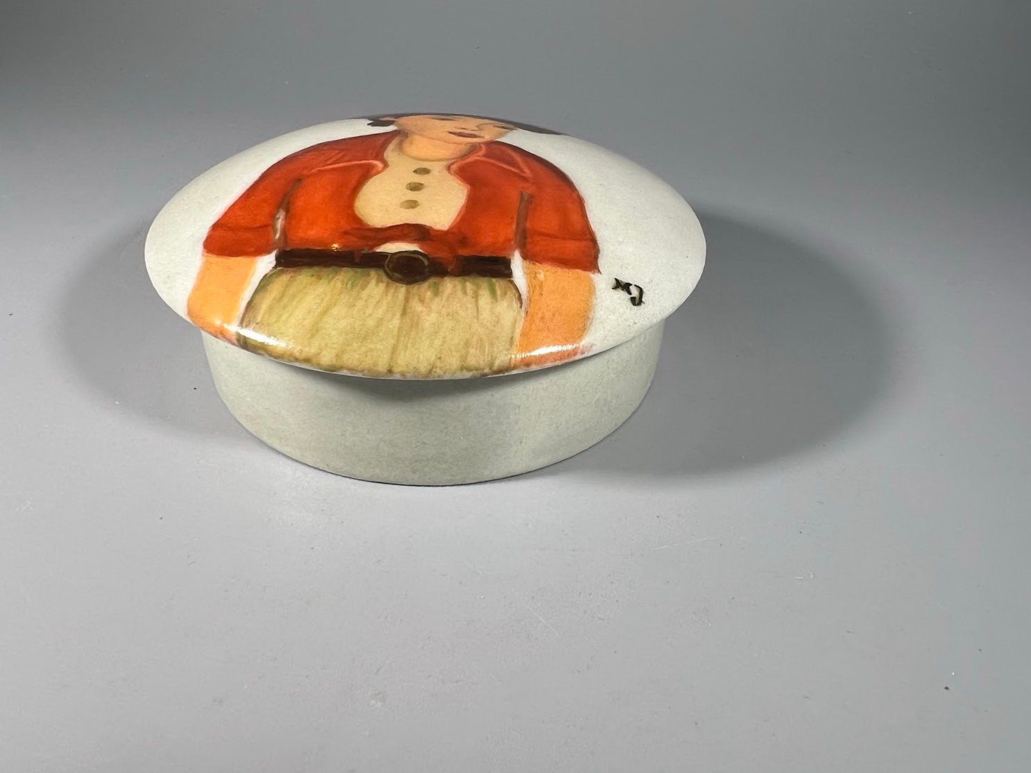 Dėžutė porcelianinė tapyta. Skersmuo 9, aukštis 4 cm. Kaina 18